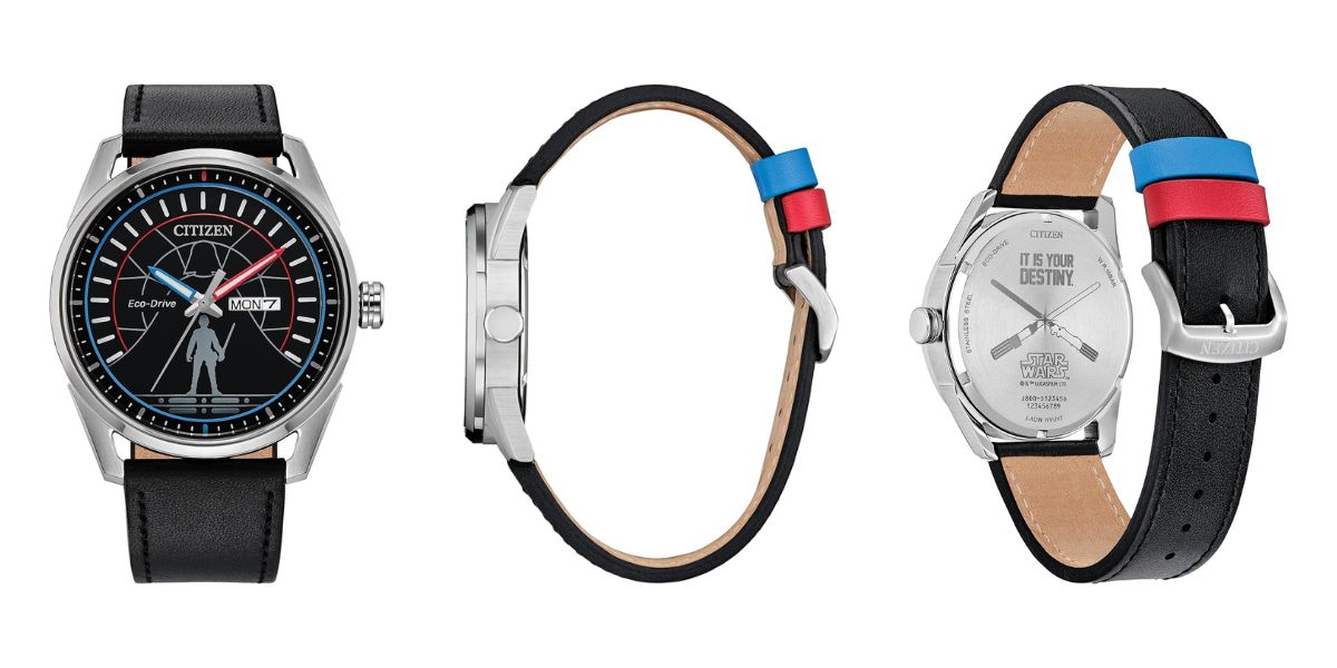 La montre Citizen Star Wars Duel a un cadran noir, avec des contours argentés de Luke Skywalker et Dark Vador, qui se sont battus en duel sur Cloud City dans le film L'Empire contre-attaque. Des accents rouges et bleus sont présents partout, notamment sur les éventails remplis de lumière et sur les boucles du bracelet de la montre ; ce sont les couleurs des sabres laser utilisés lors du combat. Le cadran est entouré d'un boîtier en acier inoxydable brossé, mesurant 42 mm de diamètre. Le fond du boîtier en acier est gravé du texte "It is your destiny" et de deux sabres laser.
