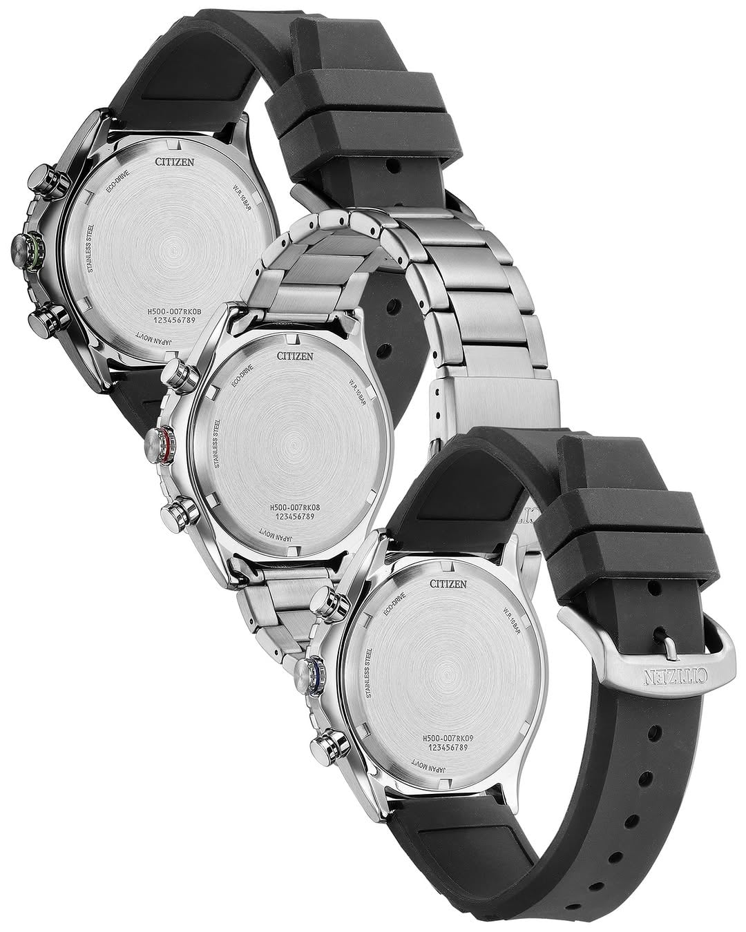 La base mécanique de ces modèles est le mouvement Calibre H500 Eco-Drive. Moteur à quartz solaire, le H500 convertit toute source de lumière en énergie électrique, offrant une réserve de marche de 150 jours avec une charge complète et une précision mensuelle nominale de ±15 secondes. Le mouvement prend en charge un chronographe à 1 seconde qui mesure jusqu'à 60 minutes, ainsi qu'un sous-cadran 24 heures à 2 heures et un guichet de date à 4 heures. Le calibre comprend également un avertissement de charge insuffisante, où l'aiguille des secondes passe à des intervalles de deux secondes lorsque la pile est épuisée.