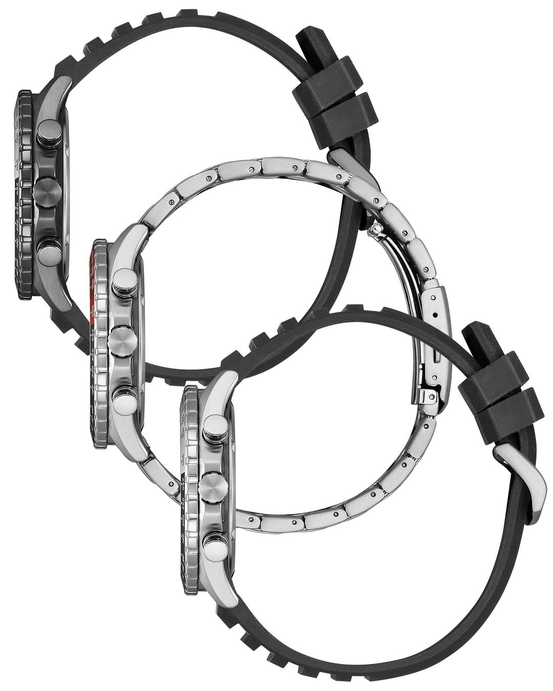 Les configurations de design varient entre les trois références. L'AT2565-05E possède un boîtier en acier inoxydable plaqué noir avec des sous-cadrans de couleur verte et est livrée sur un bracelet en caoutchouc noir texturé. L'AT2566-88E présente une finition argentée standard avec une lunette bicolore rouge et noire et un bracelet à maillons multiples en acier inoxydable, pour un poids total de 153 g. Enfin, l'AT2569-04L est équipée d'un cadran bleu avec une lunette noire et argentée, et est également dotée d'un bracelet en caoutchouc noir. Si l'étanchéité à 10 bars rend ces modèles adaptés à des activités aquatiques modérées, le choix d'un verre minéral au lieu d'un saphir dans cette gamme de prix constituera un compromis mécanique important pour les consommateurs qui préfèrent la résistance aux chocs à la prévention des rayures.