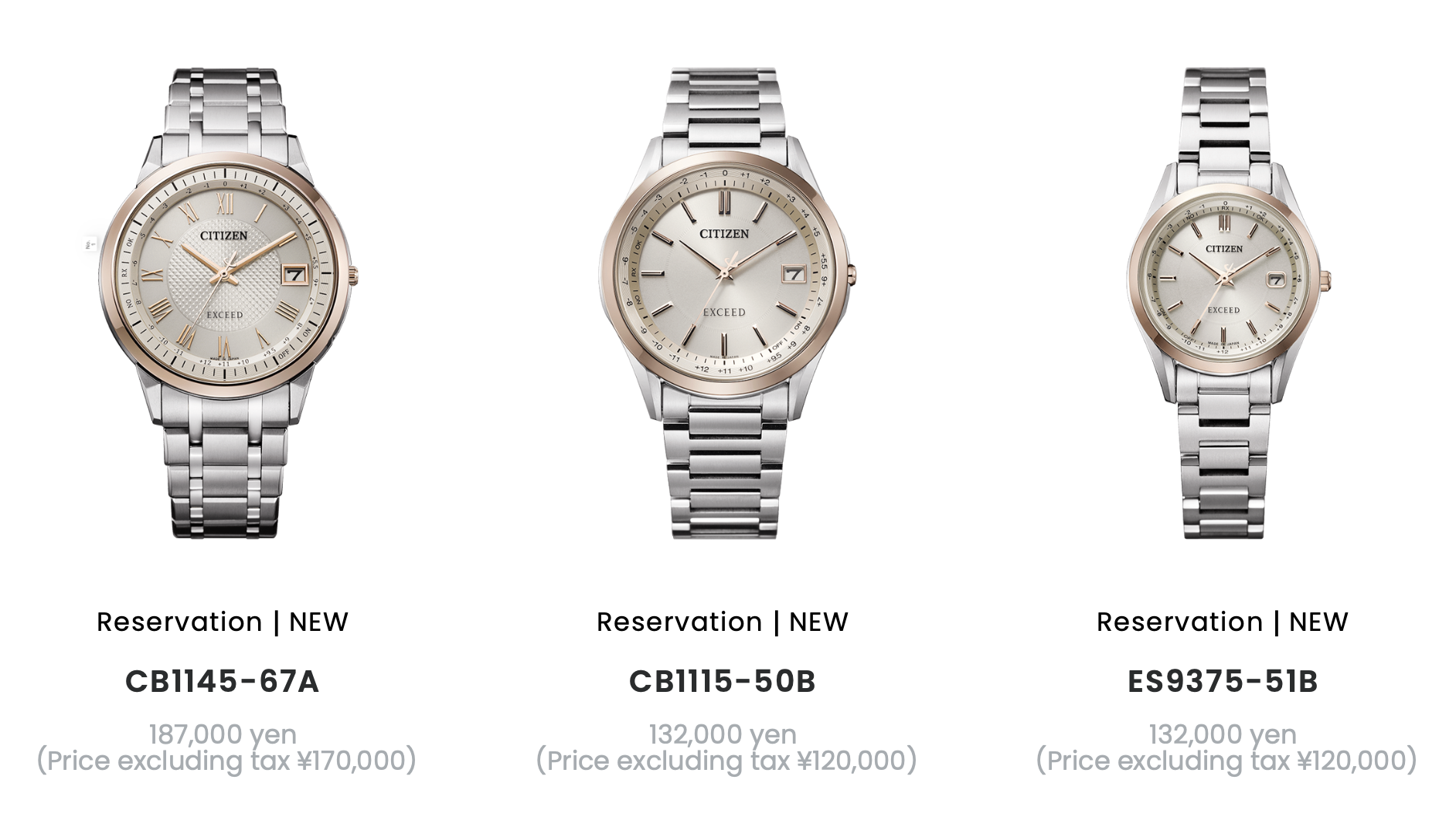 En plus d'un nouveau modèle Série 8citizen a présenté trois nouveaux modèles de sa gamme Exceed au Japon, dont la sortie est prévue le 5 mars. Les nouvelles références - ES9375-51BCB1115-50Bet CB1145-67A - sont dotées de la technologie solaire Eco-Drive et d'un chronométrage radio multibande, et sont présentées dans de minces boîtiers en Super Titane.