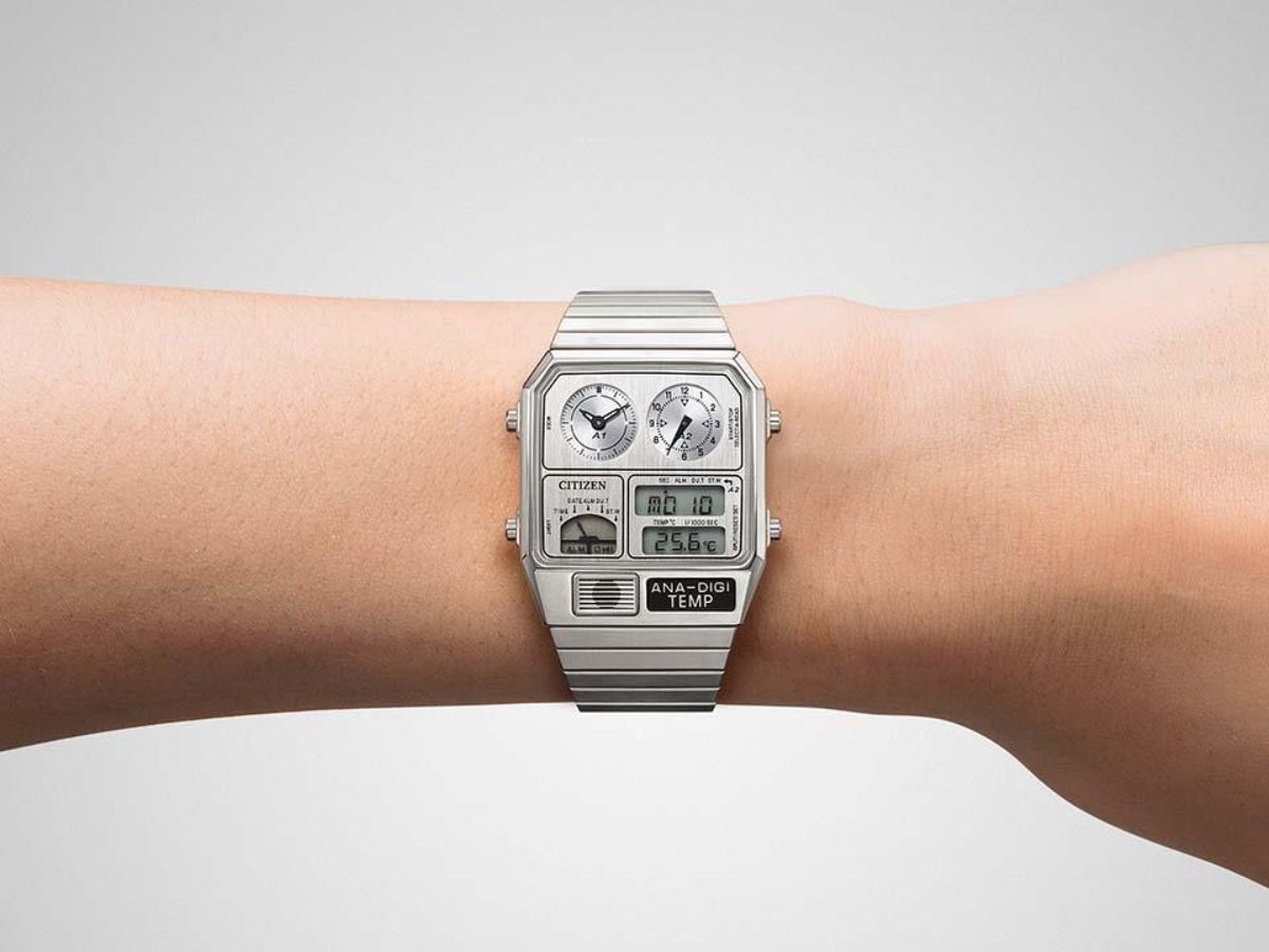 La montre Citizen Ana-Digi Temp a été lancée dans les années 1980, et la société suggère qu'elle a un "design rétro-futuriste". Le boîtier, le cadran et le bracelet sont tous en acier inoxydable de la même couleur, avec une finition capillaire dans différentes directions sur divers éléments, apportant de la texture au design. Chaque variante possède un cadran carré, avec le mot Ana-Digi Temp dans la partie la plus basse du visage.