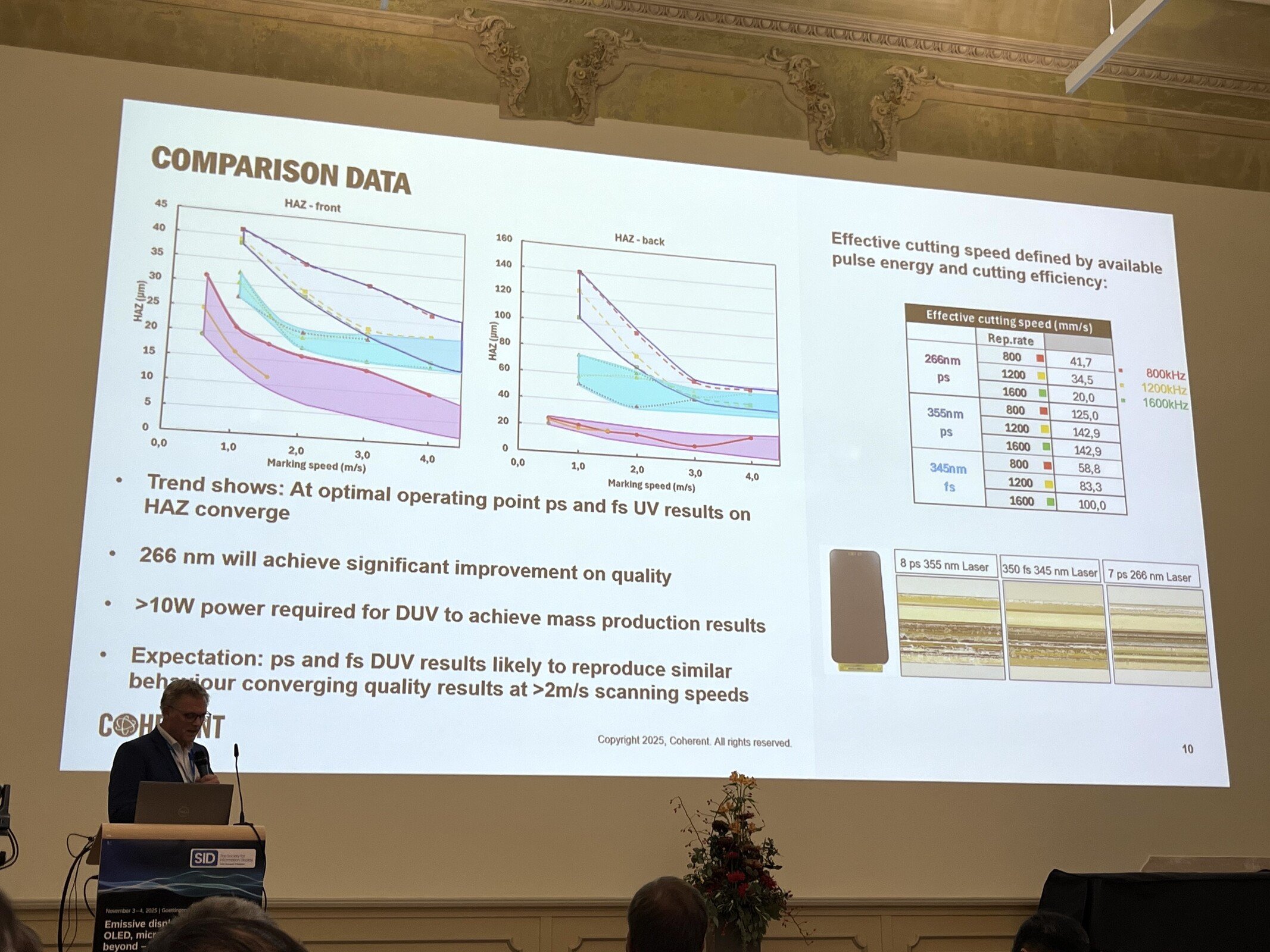 Coherent, l'hôte de la conférence du chapitre Mid-Europe de la Society of Information Display (conférence SID-MEC) en Allemagne, a donné un aperçu de ses plans pour améliorer la découpe des écrans. En tant que fournisseur de solutions laser, la société basée à Göttingen n'est pas seulement spécialisée dans le recuit https://www.coherent.com/en/news/blog/laser-annealing-flat-panel-displays comme étape préalable à la production d'écrans, mais développe également des outils pour la découpe ultérieure des écrans.