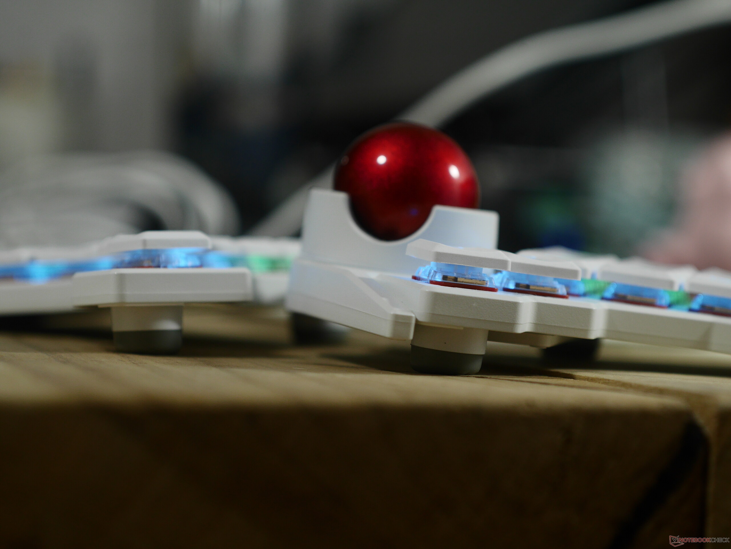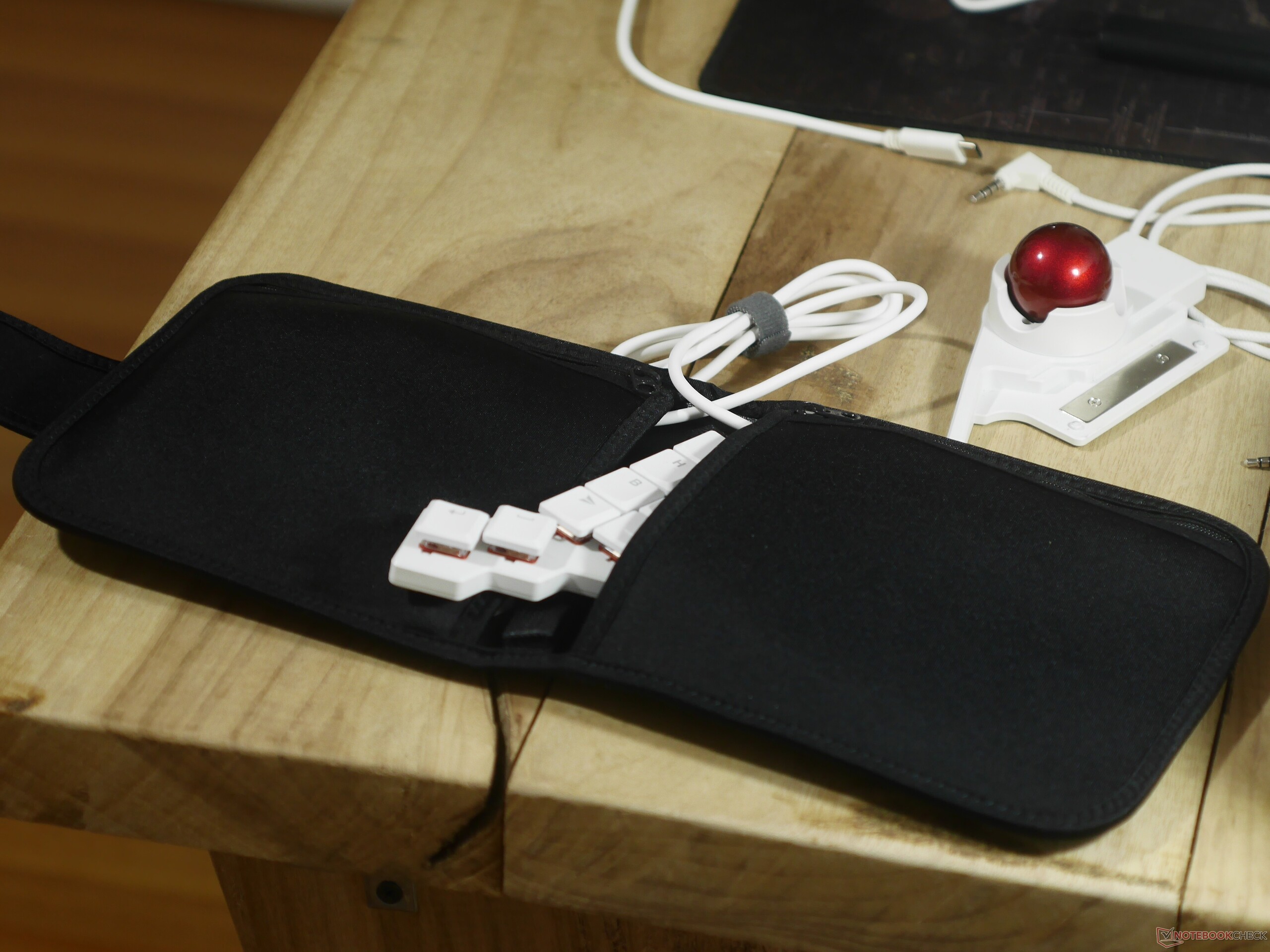 Le Navigator, quant à lui, est presque entièrement en plastique, y compris la boule de commande en résine. Cela ne signifie pas pour autant qu'il est fragile - j'ai fait tomber la boule de commande sur des carreaux de céramique à plusieurs reprises, et elle ne présente aucun signe de dommage. La track ball utilise des roulements en céramique pour un fonctionnement en douceur, et elle se fixe très fermement au Voyager grâce à un gros aimant en néodyme qui est vissé dans le boîtier de la coque. Le Navigator est également livré avec sa propre mallette de transport rembourrée, suffisamment grande pour contenir la trackball, la coque et même le plus long câble USB fourni par ZSA avec le Voyager.