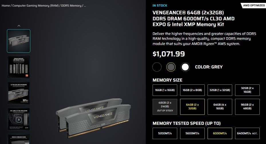 Cependant, deux jours seulement après avoir émis ces bons de réduction de 40 %, Corsair semble avoir discrètement augmenté les prix de la RAM DDR5 dans l'ensemble de son magasin. Ces augmentations réduisent considérablement la valeur réelle des réductions.
