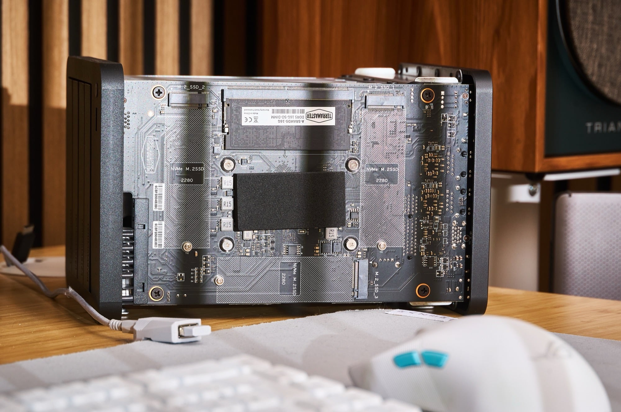 TerraMaster utilise un processeur Intel N150 plus moderne, bien que modérément puissant, Processeur Intel N150 et équipe l'appareil de 16 Go de RAM dès sa sortie de l'emballage. La mémoire peut être étendue à 32 Go grâce à un seul DDR5-4800 SO-DIMM. La plus grande amélioration, cependant, est sans doute la flexibilité accrue que procurent les options de stockage étendues.