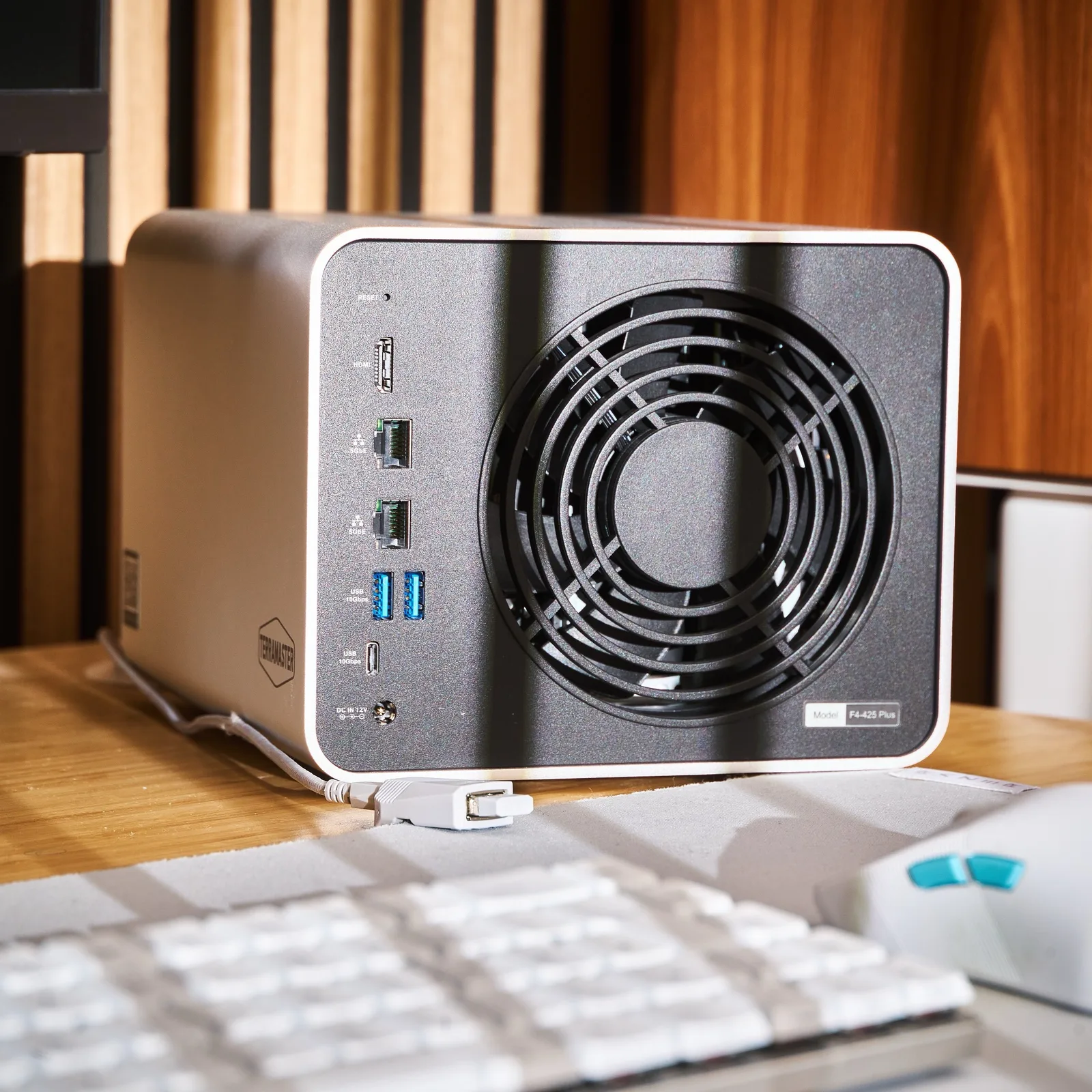 Le TerraMaster F4-425 Plus gagne des points pour son boîtier métallique solide, son ventilateur silencieux et surtout son ensemble de fonctionnalités polyvalentes. Quatre disques durs, trois disques SSD, quatre ports USB rapides et deux ports Ethernet 5 Gbps font bonne impression.