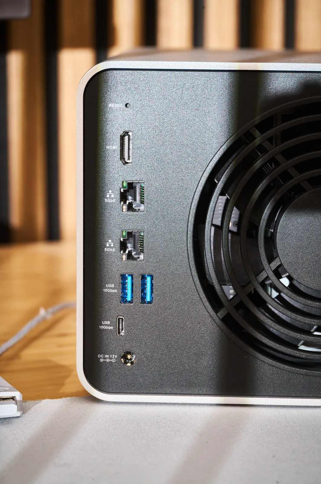 Au-delà de la construction améliorée, le modèle Plus apporte plusieurs améliorations substantielles. Le plus important est qu'il se connecte désormais au réseau domestique via deux ports Ethernet 5 Gbps, qui peuvent être utilisés simultanément pour une bande passante combinée de 10 Gbps. En pratique, le NAS peut être jusqu'à quatre fois plus rapide que son prédécesseur.