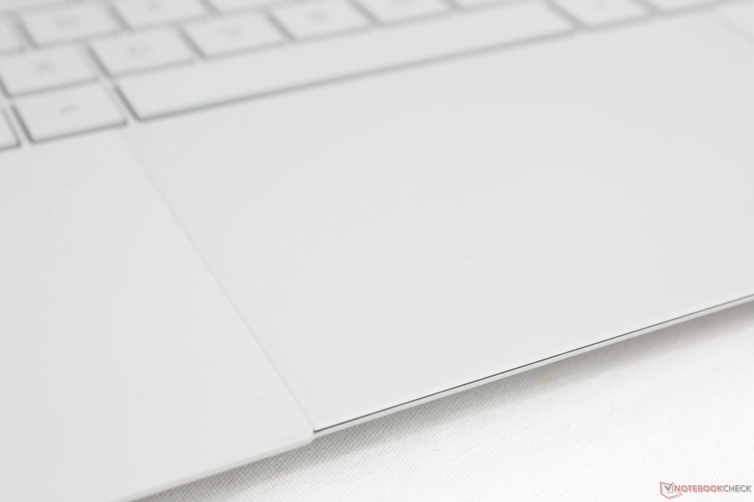 Bien que le clickpad soit de taille convenable (12,8 x 8,8 cm), le retour haptique lors du clic est très faible, ce qui donne une sensation insatisfaisante. De plus, le bord avant du pavé tactile est complètement aligné avec le bord avant du châssis, contrairement à la plupart des autres ordinateurs portables, ce qui signifie que les clics ou les mouvements accidentels sont plus fréquents dans notre expérience.