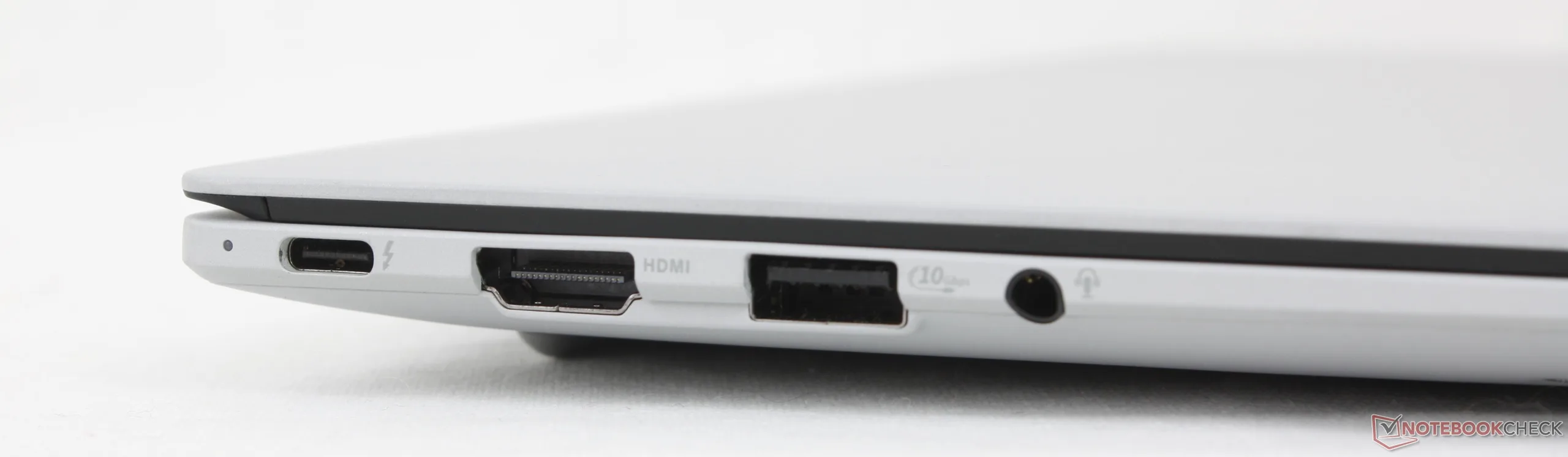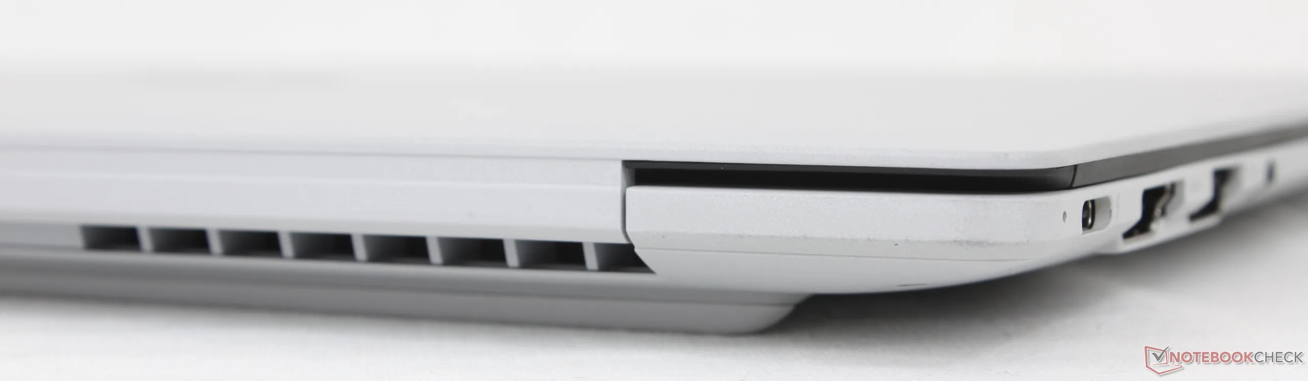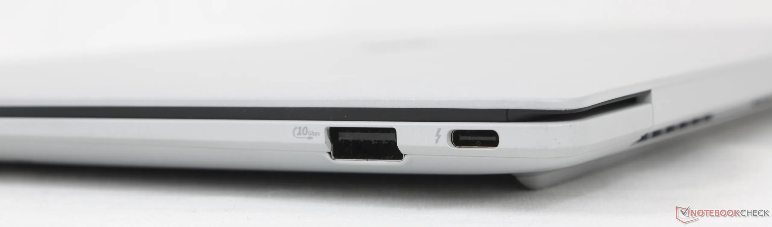 Les options de port sont comparables à celles du ThinkPad T14s Gen 6 bien qu'il n'y ait pas d'options pour les cartes à puce. Sur l'Asus, cependant, nous apprécions que les deux ports USB-C soient répartis entre les bords droit et gauche du système pour faciliter la charge. En comparaison, les deux mêmes ports USB-C sur le ThinkPad susmentionné ne se trouvent que sur le bord gauche.