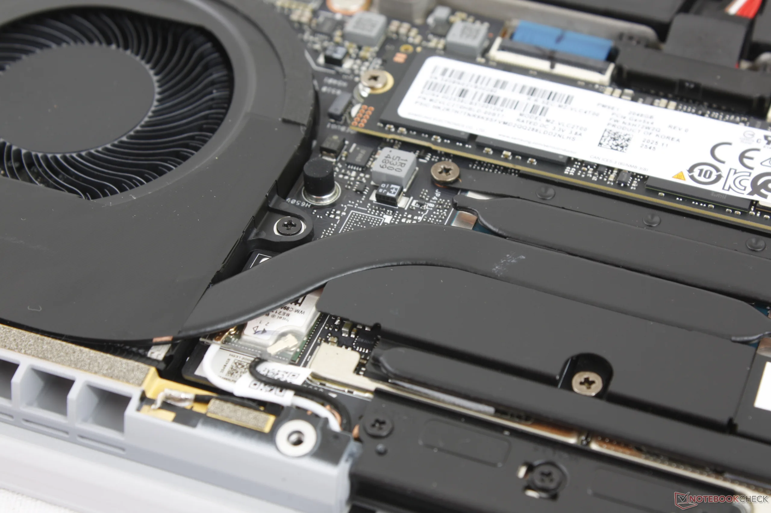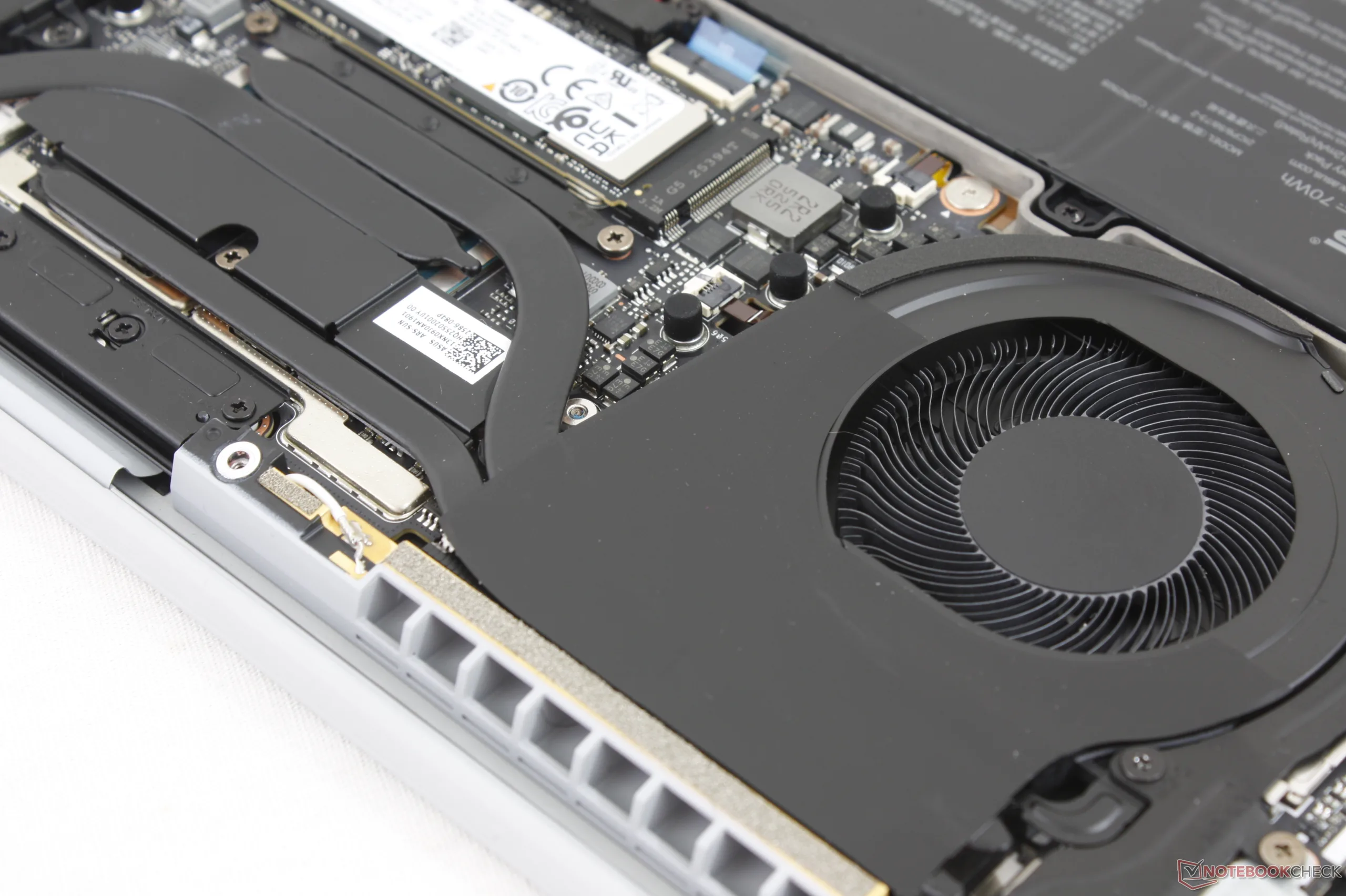 Notre unité de test est livrée avec le processeur Core Ultra X7 358H et 32 Go de RAM LPDDR5X soudée, tandis que les options plus haut de gamme sont livrées avec le Core Ultra X9 388H et le double de mémoire. Toutes les configurations américaines comprennent le même écran tactile tandem OLED 2880 x 1800 120 Hz et la carte graphique Arc B390 intégrée. Les options de couleur Morn Grey et Jet Fog sont disponibles.
