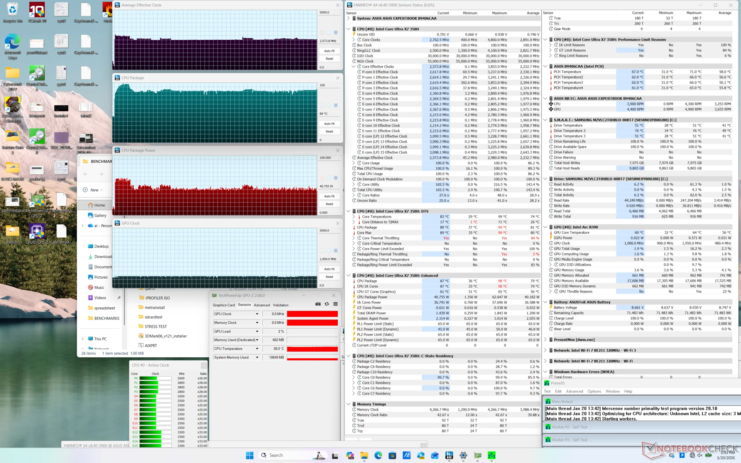 | Prime95 + FurMark Stress | ~2.2 | ~1550 | 87 |