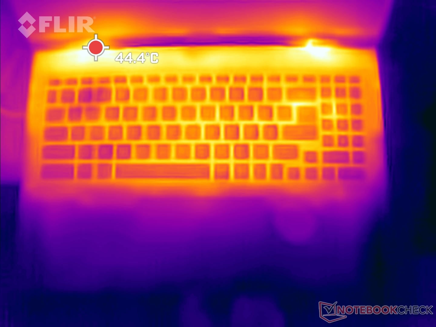 (±) La température maximale du côté supérieur est de 44.8 °C / 113 F, par rapport à la moyenne de 40.5 °C / 105 F, allant de 21.2 à 68.8 °C pour la classe Gaming.