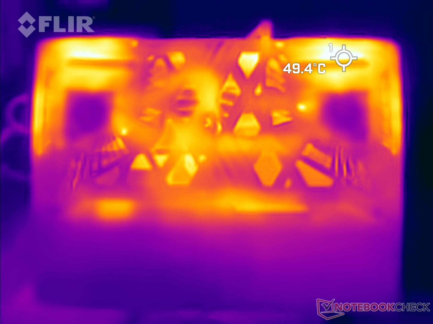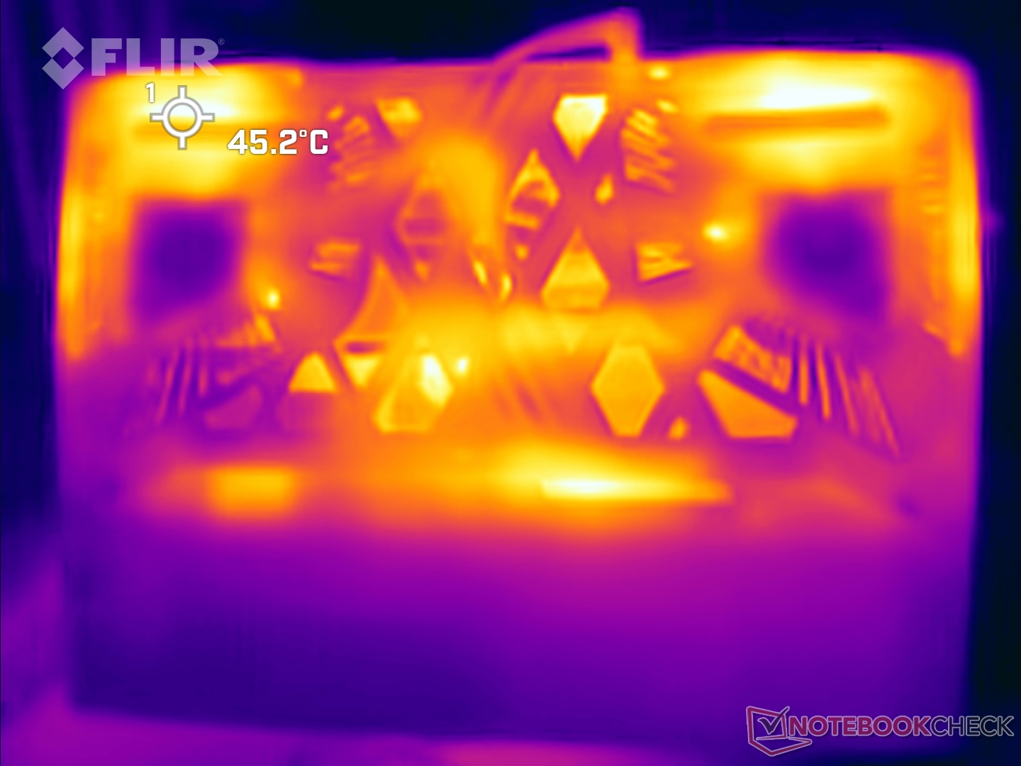 Les températures de surface peuvent atteindre 45 °C sur la partie supérieure et près de 49 °C sur la partie inférieure, sous charge en mode Performance extrême.