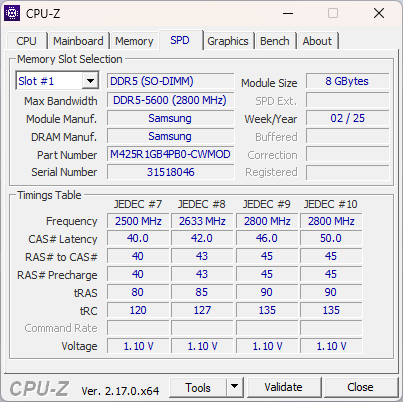 La carte WLAN Intel Wi-Fi 6E AX211 affiche des vitesses décentes dans la bande 5 GHz, mais la bande 6 GHz 6E offre un débit élevé de 1,7 Gbps en émission et en réception lors des tests effectués avec notre routeur de référence Asus ROG Rapture GT-AXE11000.