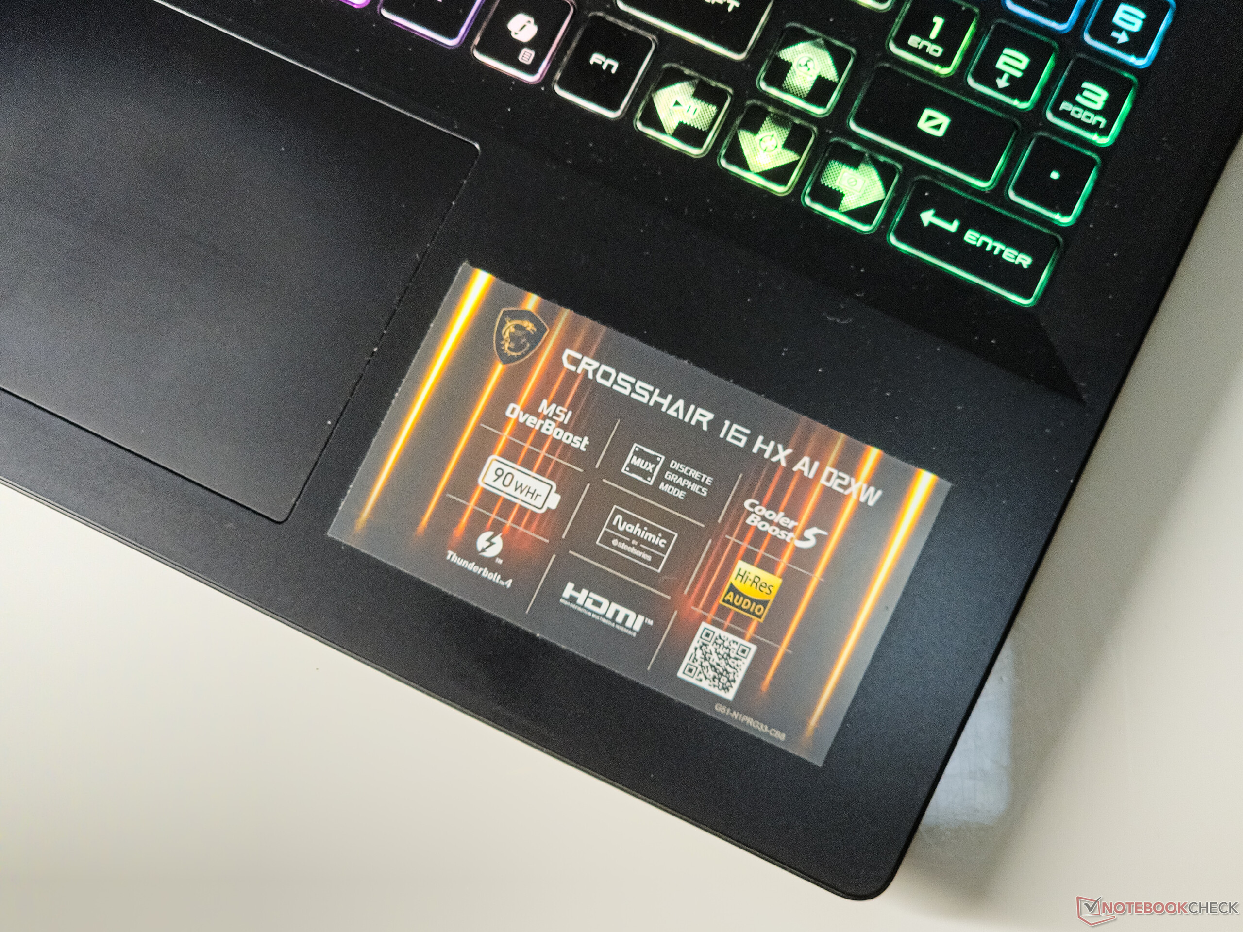 - Impressions générales de Notebookcheck sur la MSI Crosshair 16 HX AI