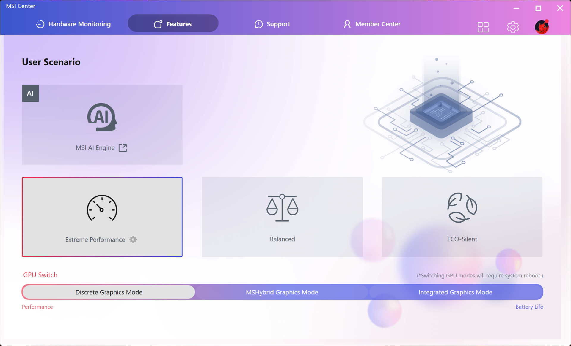 Le mode Performance extrême libère tout le potentiel de la Crosshair 16 HX AI, mais il s'accompagne d'une augmentation des émissions de chaleur et de bruit, ainsi que d'une consommation d'énergie plus élevée.