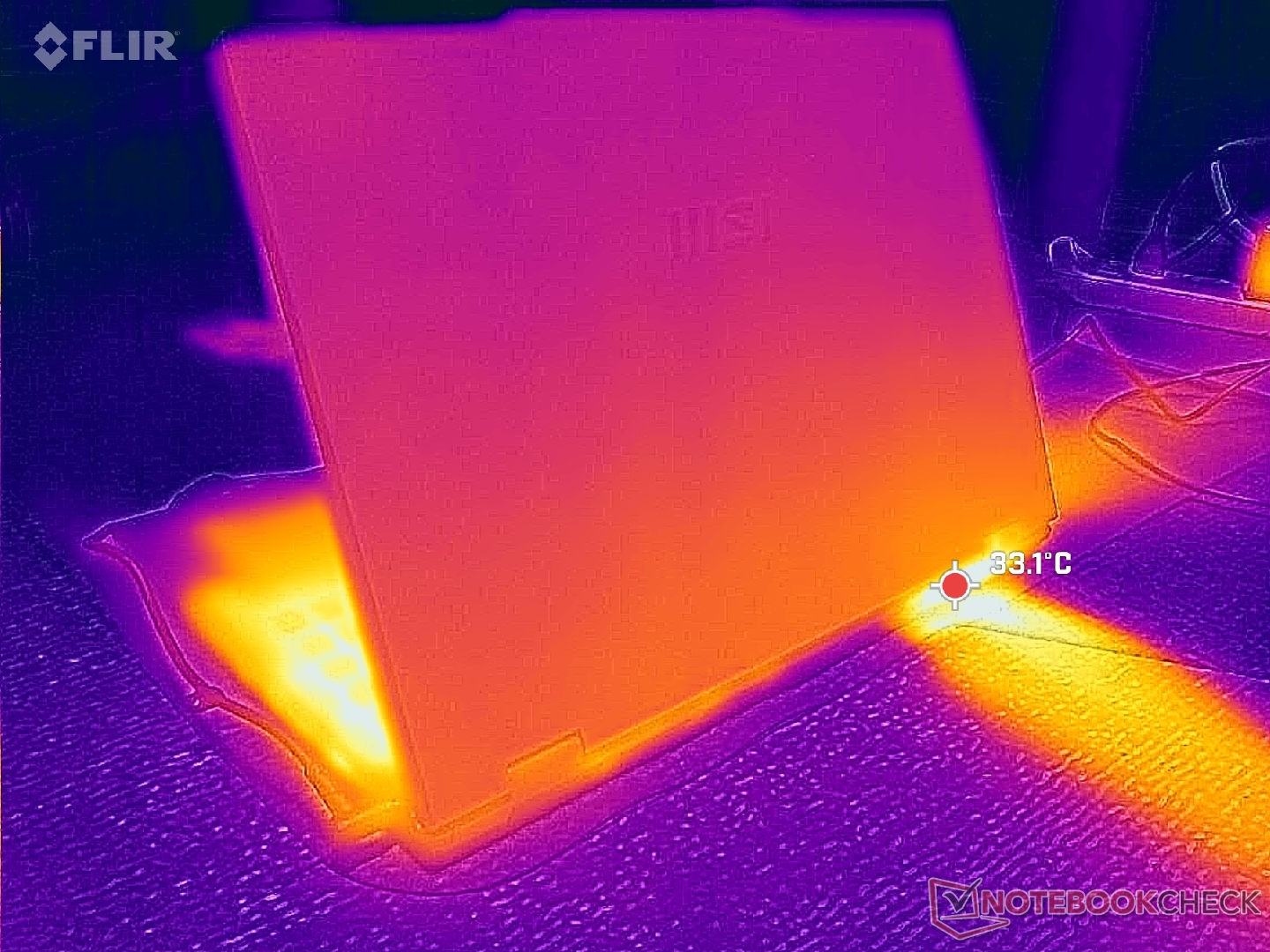 (+) La température maximale du côté supérieur est de 35 °C / 95 F, par rapport à la moyenne de 34.3 °C / 94 F, allant de 21.2 à 62.5 °C pour la classe Office.