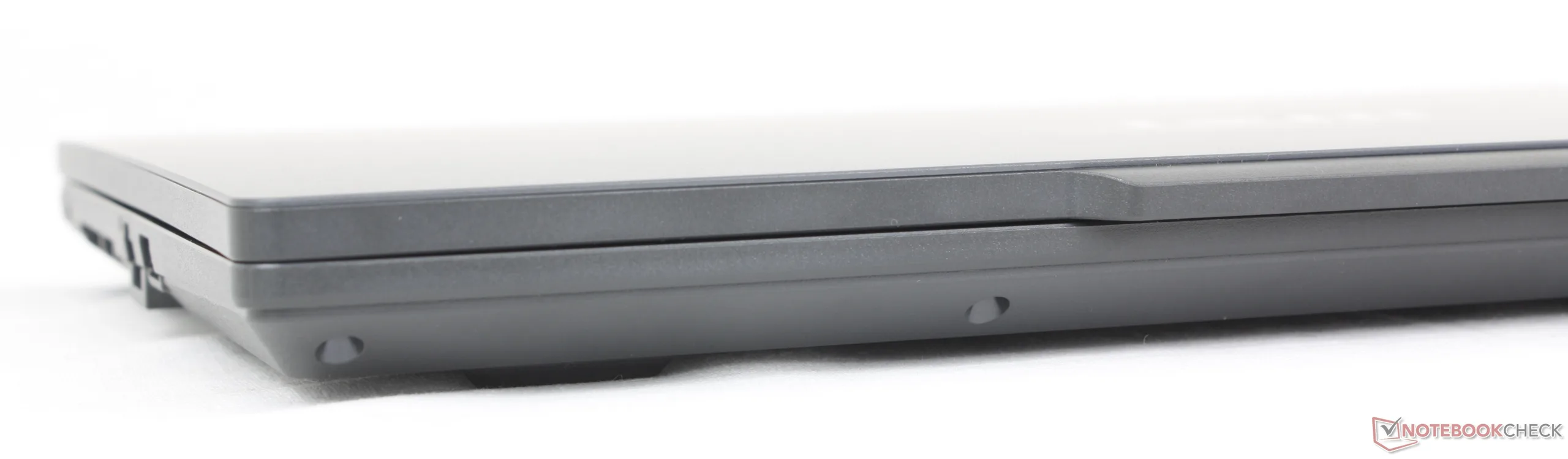 Le châssis est principalement constitué de plastique mat et lisse avec une rigidité décente pour maintenir les coûts à un niveau bas. Il est intéressant de noter que le système est plus lourd et plus épais que beaucoup d'autres ordinateurs portables de 16 pouces, mais qu'il est moins encombrant grâce à ses bords plus étroits.