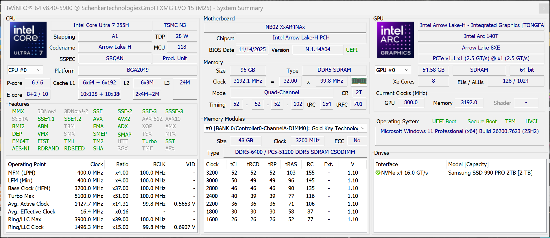 | Schenker XMG Evo 15 (M25) (Angelbird AV Pro V60) | |