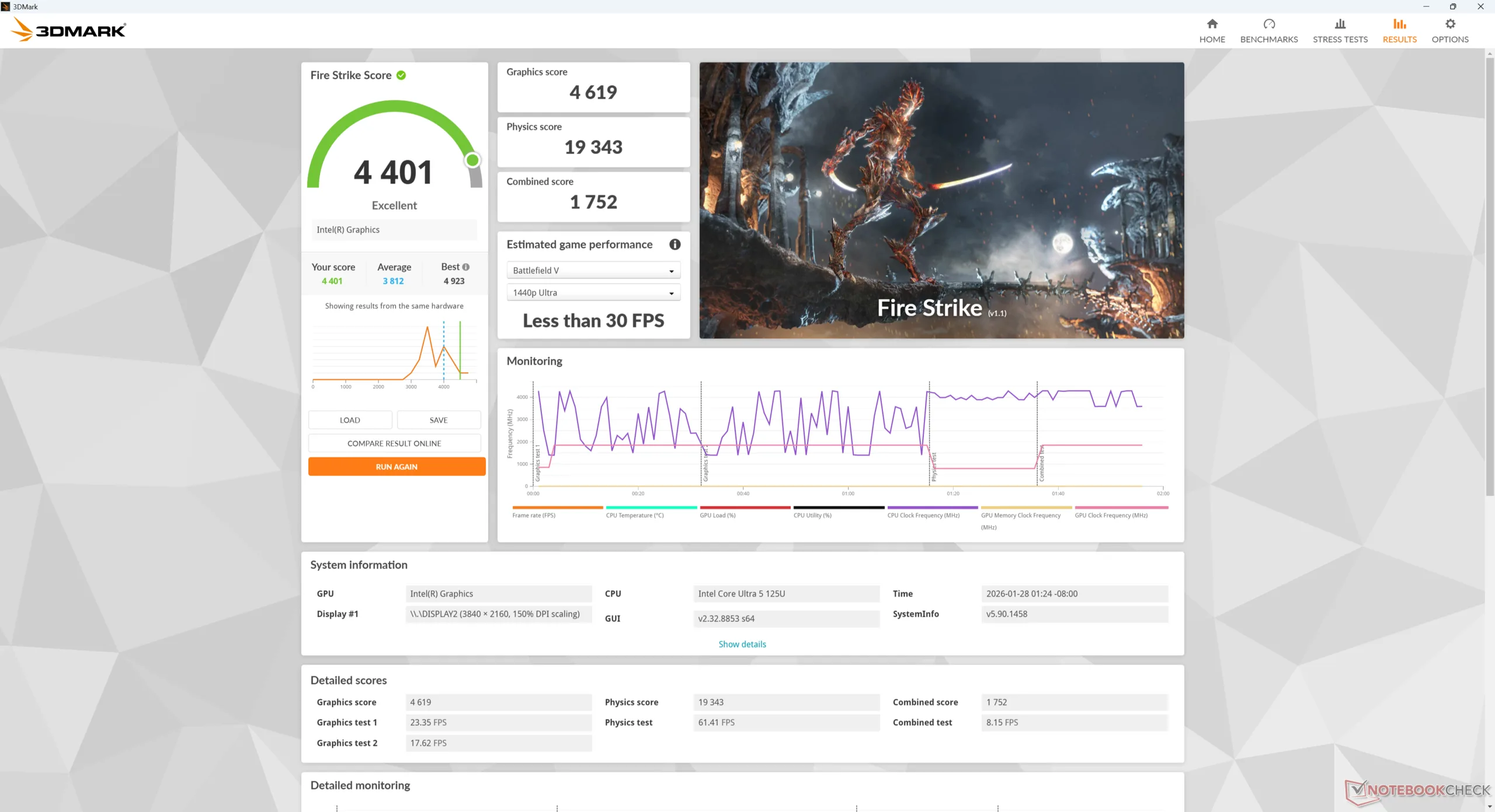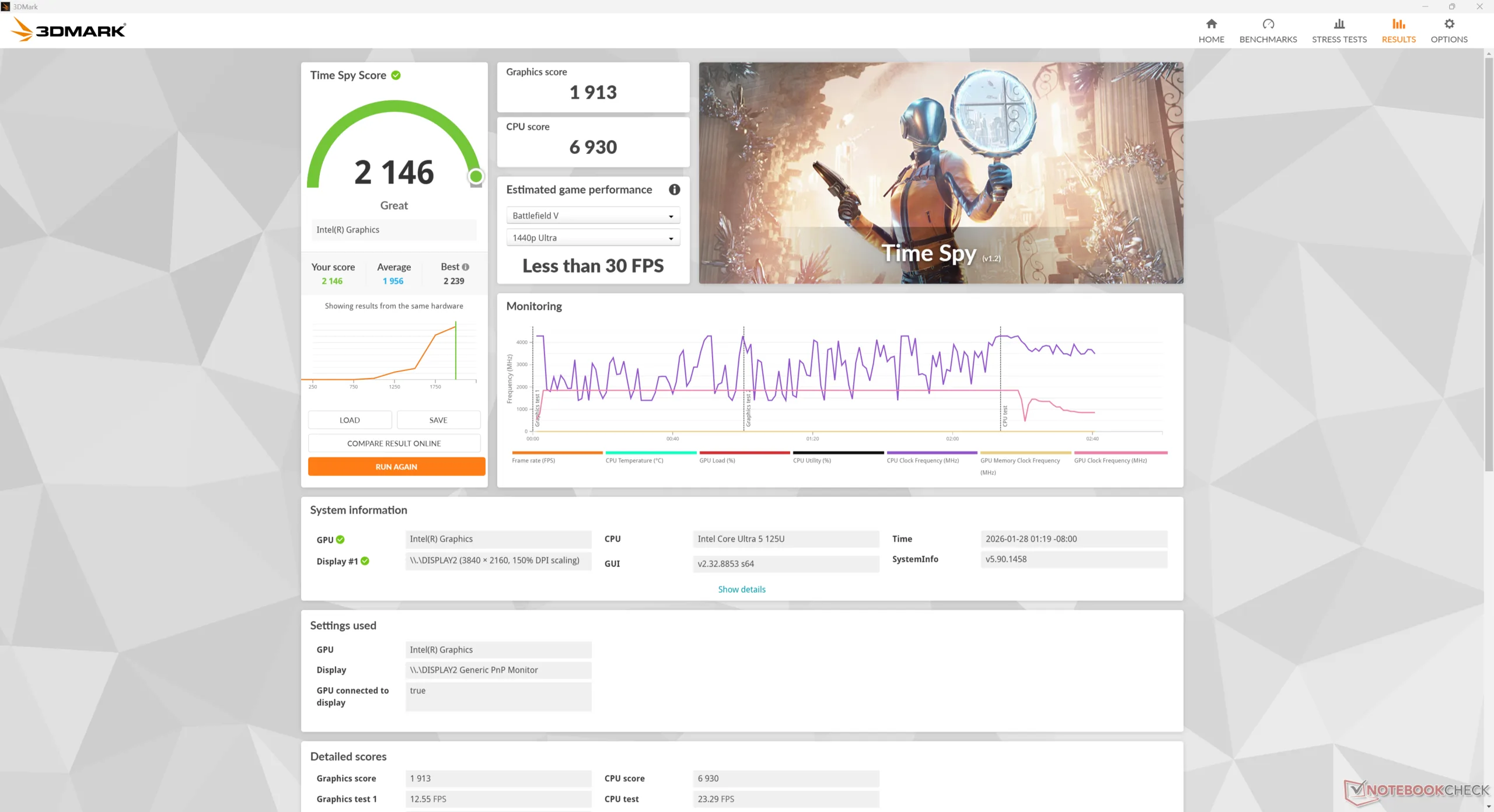| Moyenne Intel Core Ultra 5 125U (28563 - 41152, n=9) | |