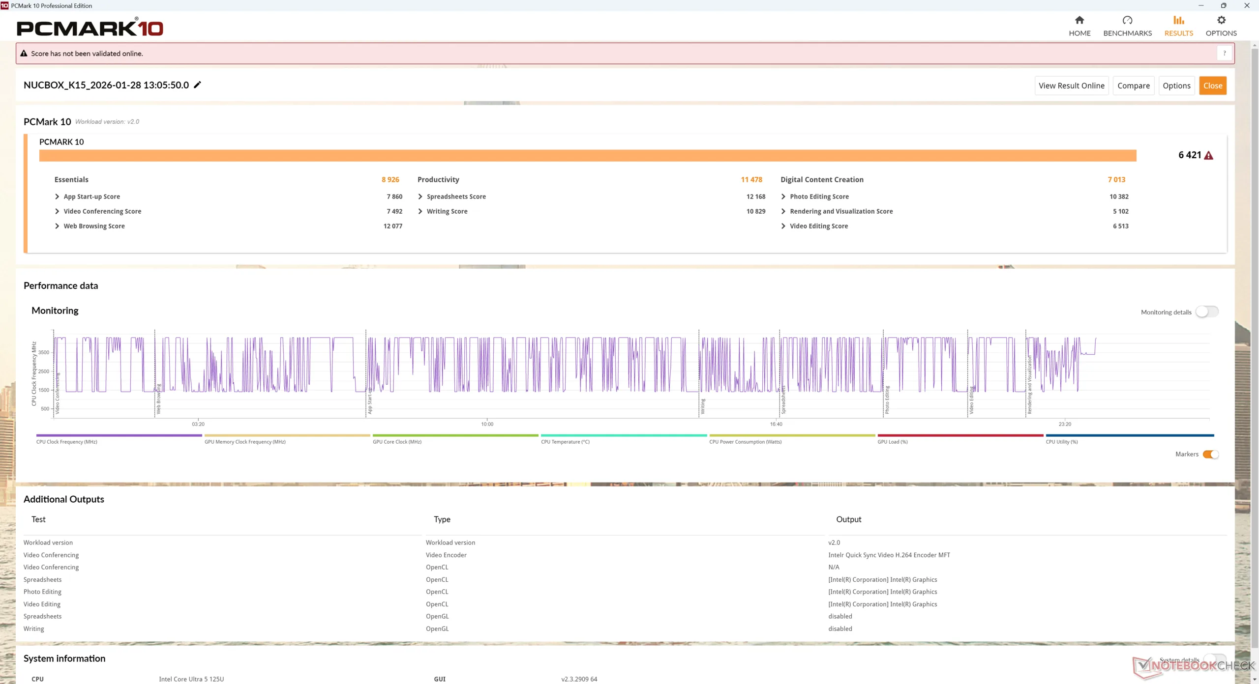 | Moyenne Intel Core Ultra 5 125U (8384 - 9601, n=9) | |