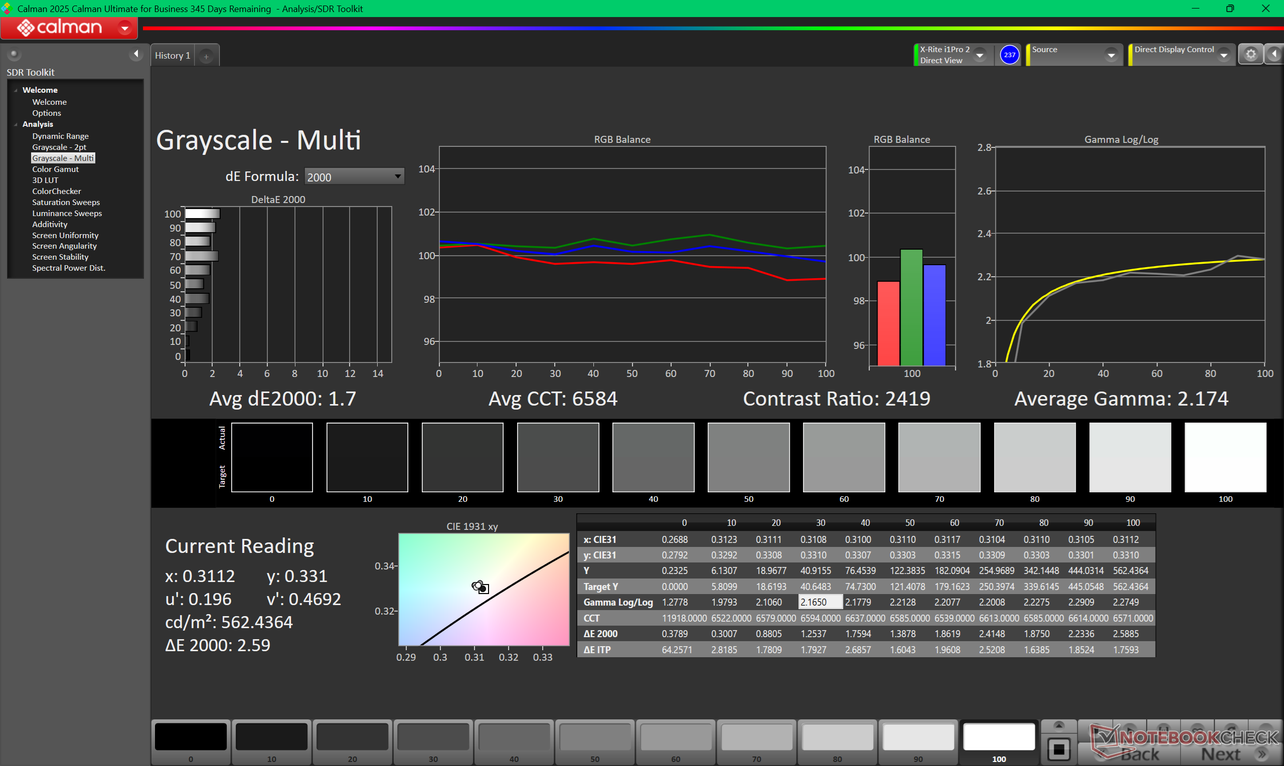 ΔE Greyscale Calman: 2.5 | ∀{0.09-98 Ø5}