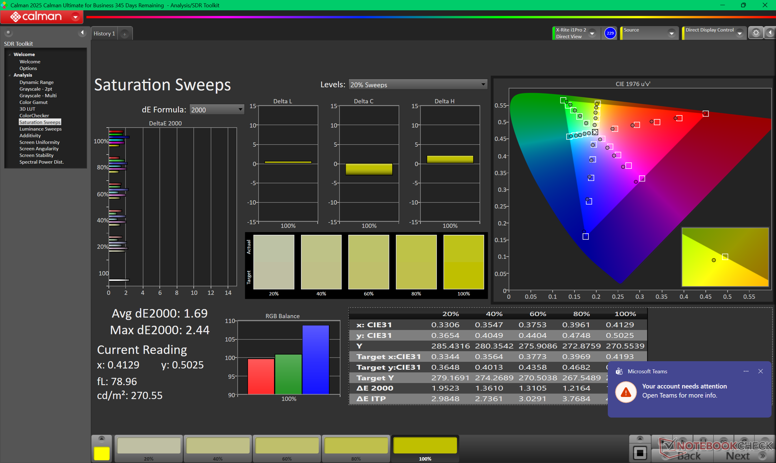 | Greyscale dE 2000 * | 2.5 | 2 20% | 1.7 32% | 2.7 -8% | 1.1 56% | 2.3 8% |