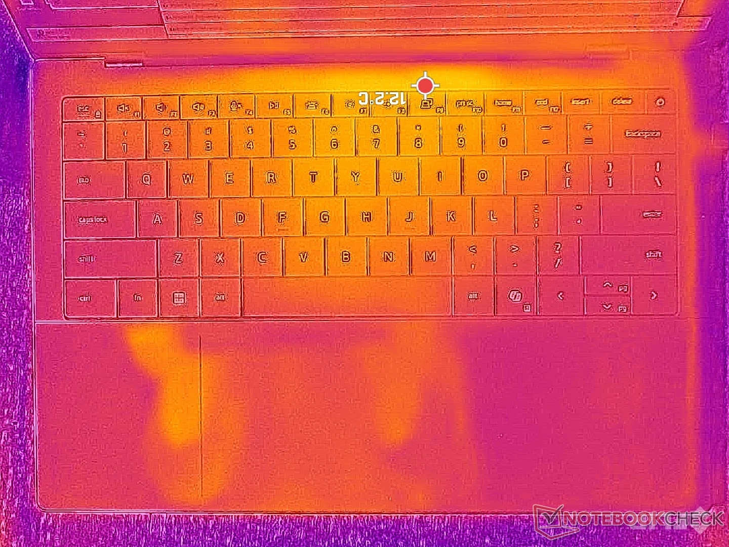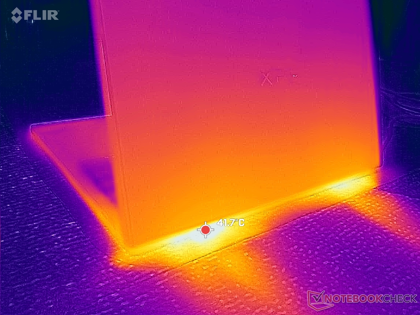 Les points chauds de la température de surface se stabiliseraient à des niveaux presque identiques à ceux que nous avons observés sur l'écran du XPS 14 X7 malgré les performances nettement plus élevées de cette dernière.