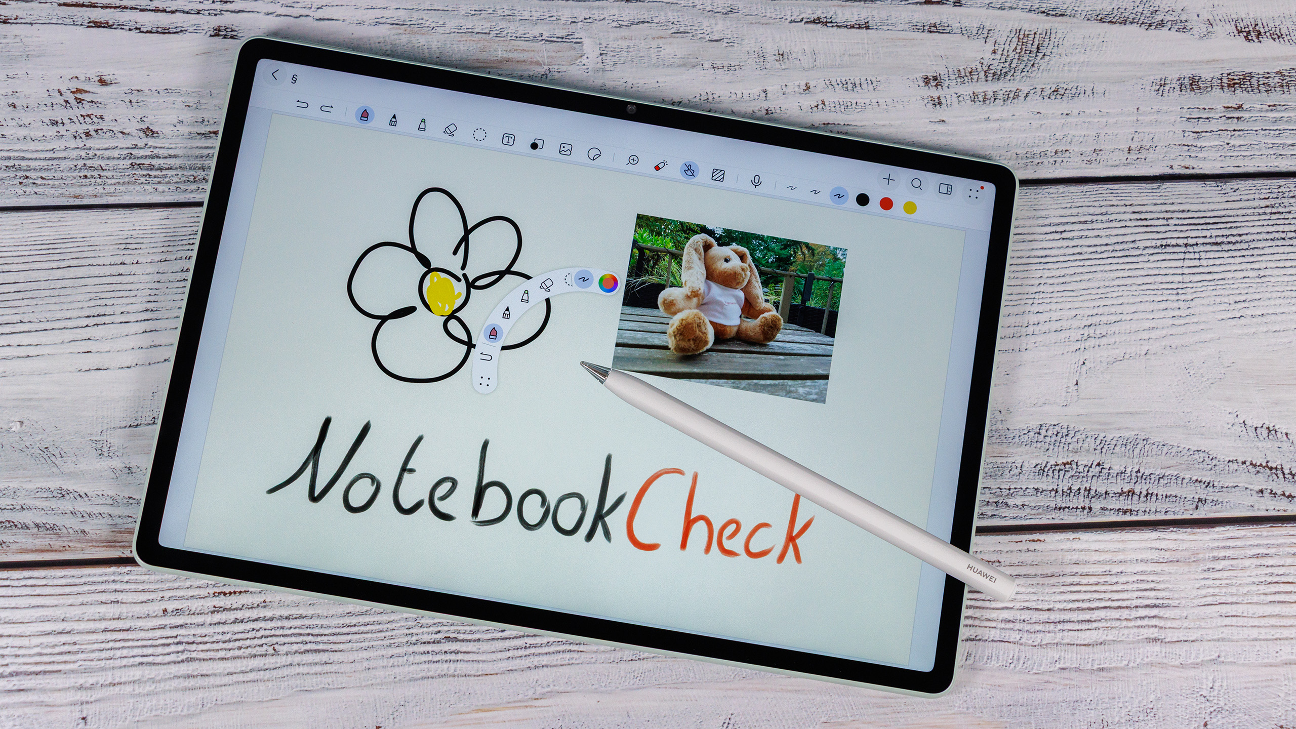 L'écran tactile capacitif fonctionne parfaitement et prend également en charge le stylet actif Huawei M-Pencil Pro pour la première fois. Le stylet se connecte à la tablette via NearLink, ce qui permet une faible latence. Avec plus de 10 000 niveaux de pression, il est très sensible, et les trois pointes de stylet différentes (écriture fine, fine, dessin) ainsi que le retour haptique complètent le design hexagonal du stylet. Combiné à la surface mate PaperMatte, le résultat est une expérience d'écriture naturelle.
