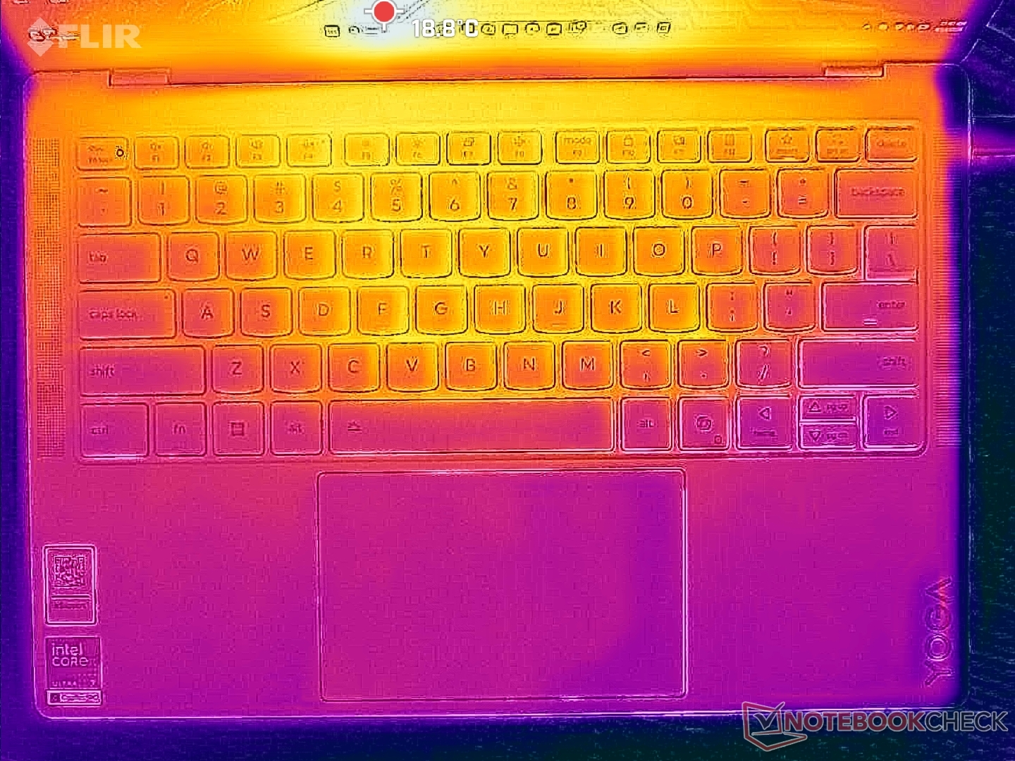 (+) La température maximale du côté supérieur est de 33.6 °C / 92 F, par rapport à la moyenne de 36.9 °C / 98 F, allant de 21 à 71 °C pour la classe Multimedia.
