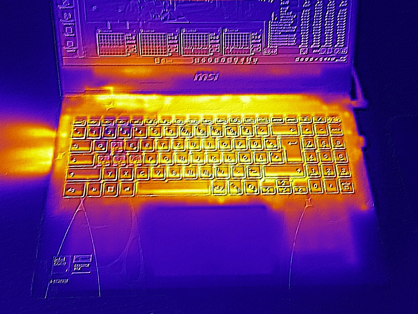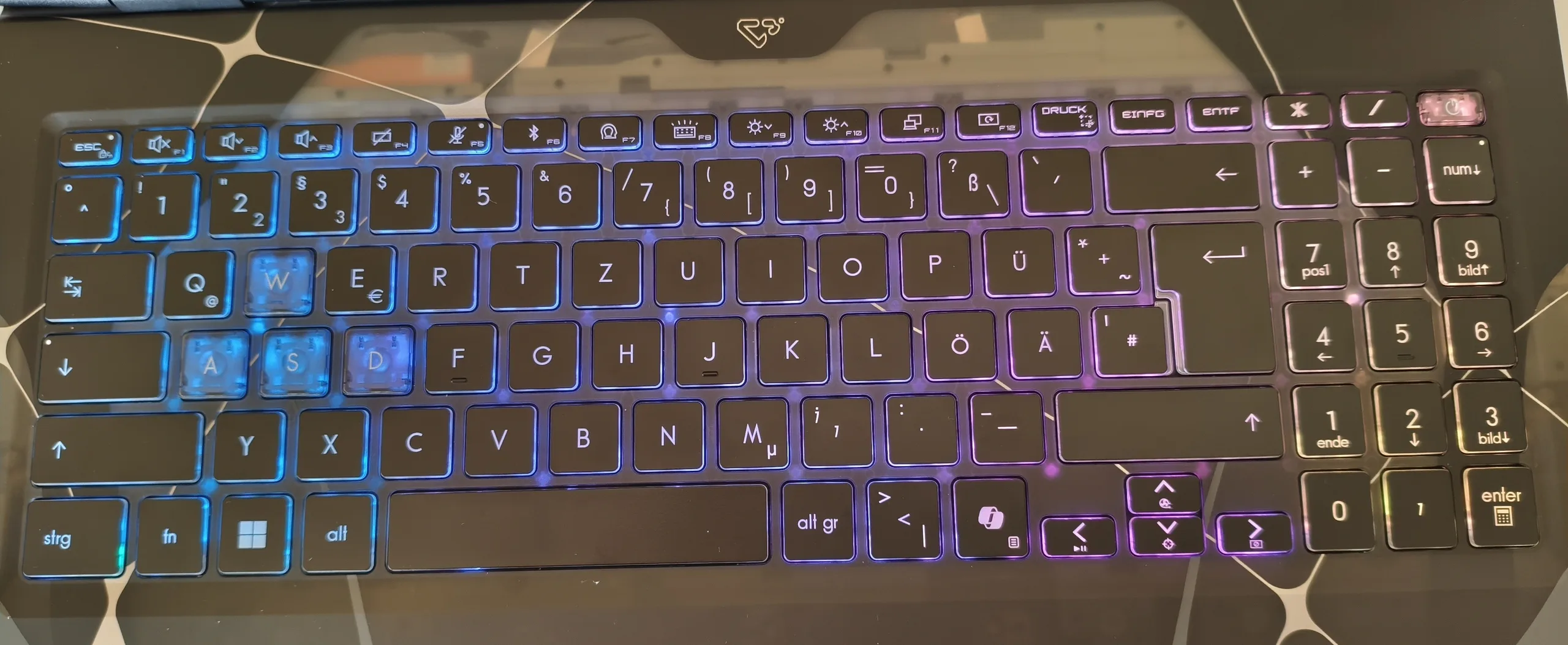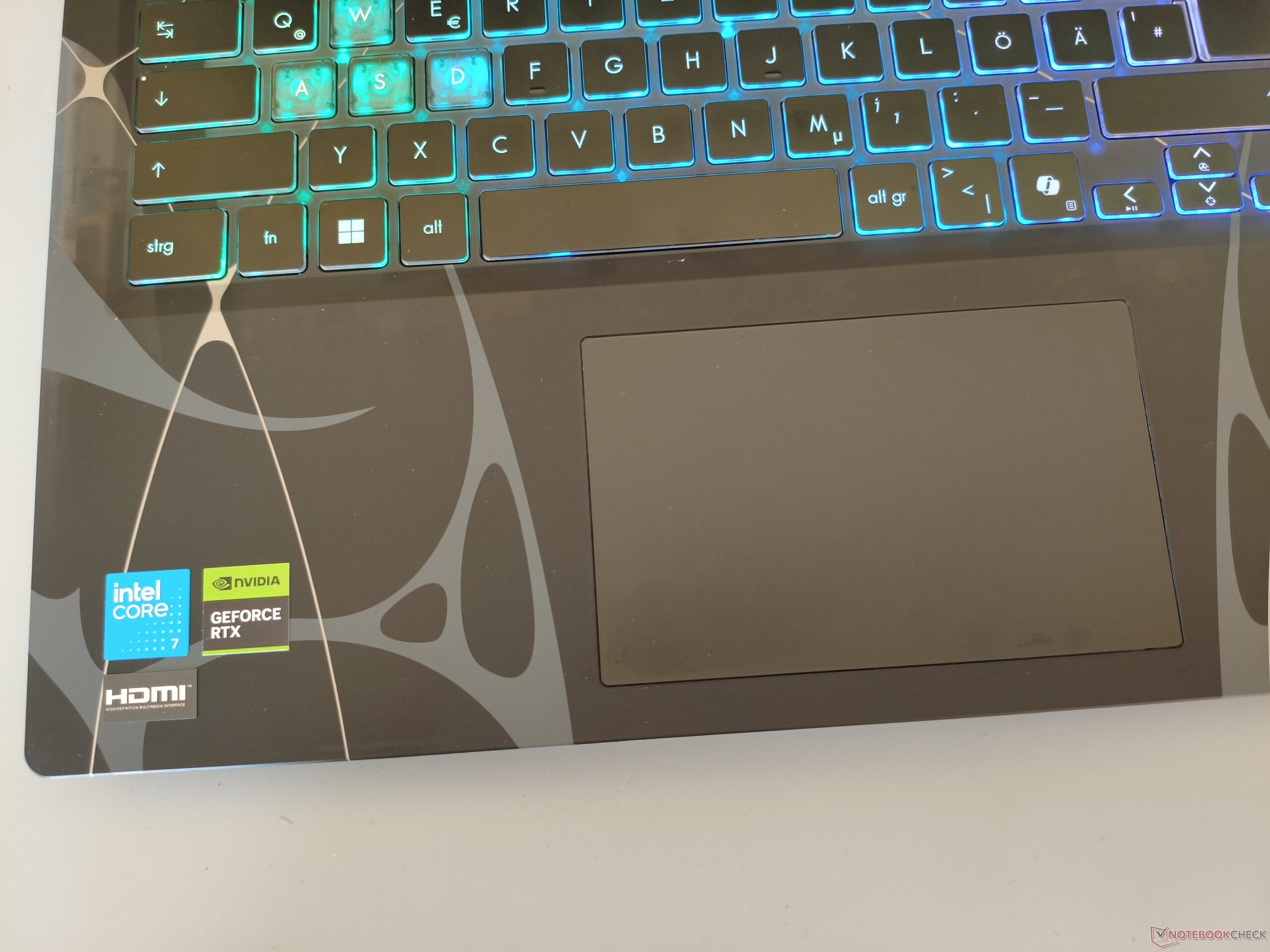 Le clavier nécessite une certaine familiarisation en raison de la disposition idiosyncrasique typique de MSI. Le fait que le pavé numérique ne comporte que trois colonnes au lieu de quatre demande également un certain temps d'adaptation. Nous décririons la sensation de frappe elle-même comme solide. Les joueurs peuvent également compter sur un éclairage RGB relativement puissant. Le pavé tactile mesure 12 x 7,6 cm, ce qui est plus que suffisant pour un appareil de 15 pouces. Le remplacement de la souris est satisfaisant en termes de précision, de propriétés de glisse et de gestes.