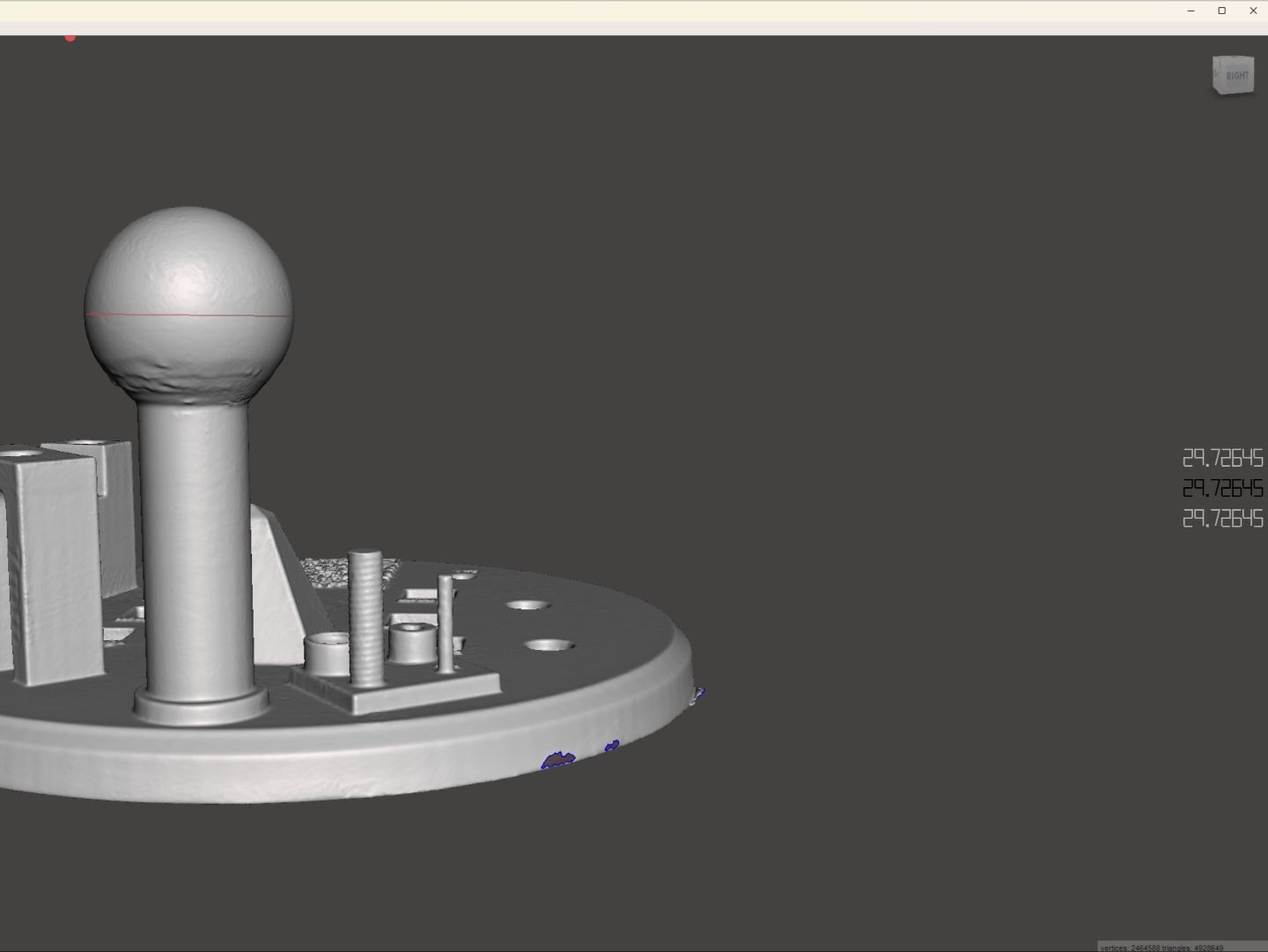 Nous avons testé la précision et l'utilité du Sermoon S1 avec quelques applications différentes. Le Scanbench imprimé en 3D (conçu par 'mairyjulien' sur Makerworld) comporte de nombreuses facettes qui permettent de mettre le scanner à l'épreuve. Nous avons utilisé MeshMixer et QuickSurface pour identifier les mesures du modèle 3D créé par le scanner en utilisant une combinaison des trois modes de laser bleu. Le Sermoon S1 a montré des écarts inférieurs à 0,30 mm pour la plupart des facettes. Cependant, il a eu plus de mal avec les détails de la profondeur, la variance se situant entre 0,50 et 0,60 mm. La précision de la boule dans le Scanbench était de l'ordre de 0,02 mm à 0,04 mm, mais les autres mesures présentaient une variance plus élevée. Nous avons également remarqué qu'en mode automatique, le laser bleu est parfois trop lumineux, ce qui entraîne des artefacts dans la numérisation. Heureusement, Creality Scan 4 élimine bien ces artefacts lors du traitement. Ce qui reste peut être facilement supprimé manuellement.