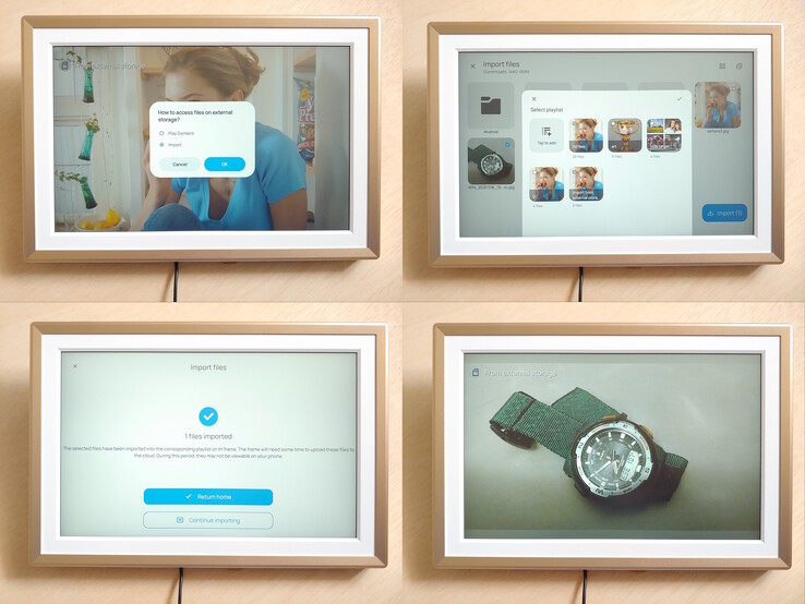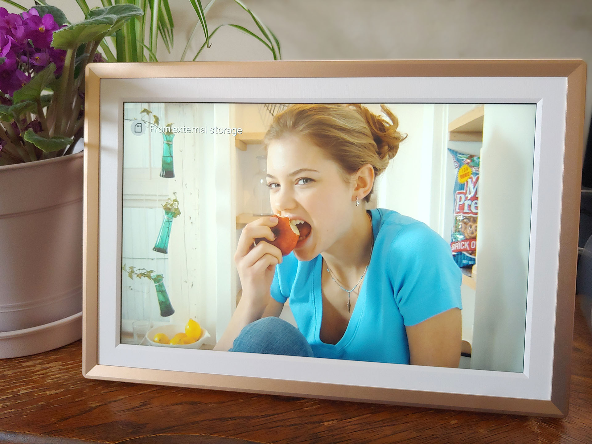 Grâce à son emplacement pour carte SD et à son port USB, les photos et les vidéos peuvent être lues immédiatement à partir d'une carte d'appareil photo, sans qu'il soit nécessaire de les télécharger au préalable. Les images peuvent être agrandies pour s'adapter à l'ensemble de l'image ou remplir le cadre. La possibilité de créer des dossiers s'est avérée très utile pour organiser les photos, permettant aux utilisateurs de visualiser certaines photos d'événements.