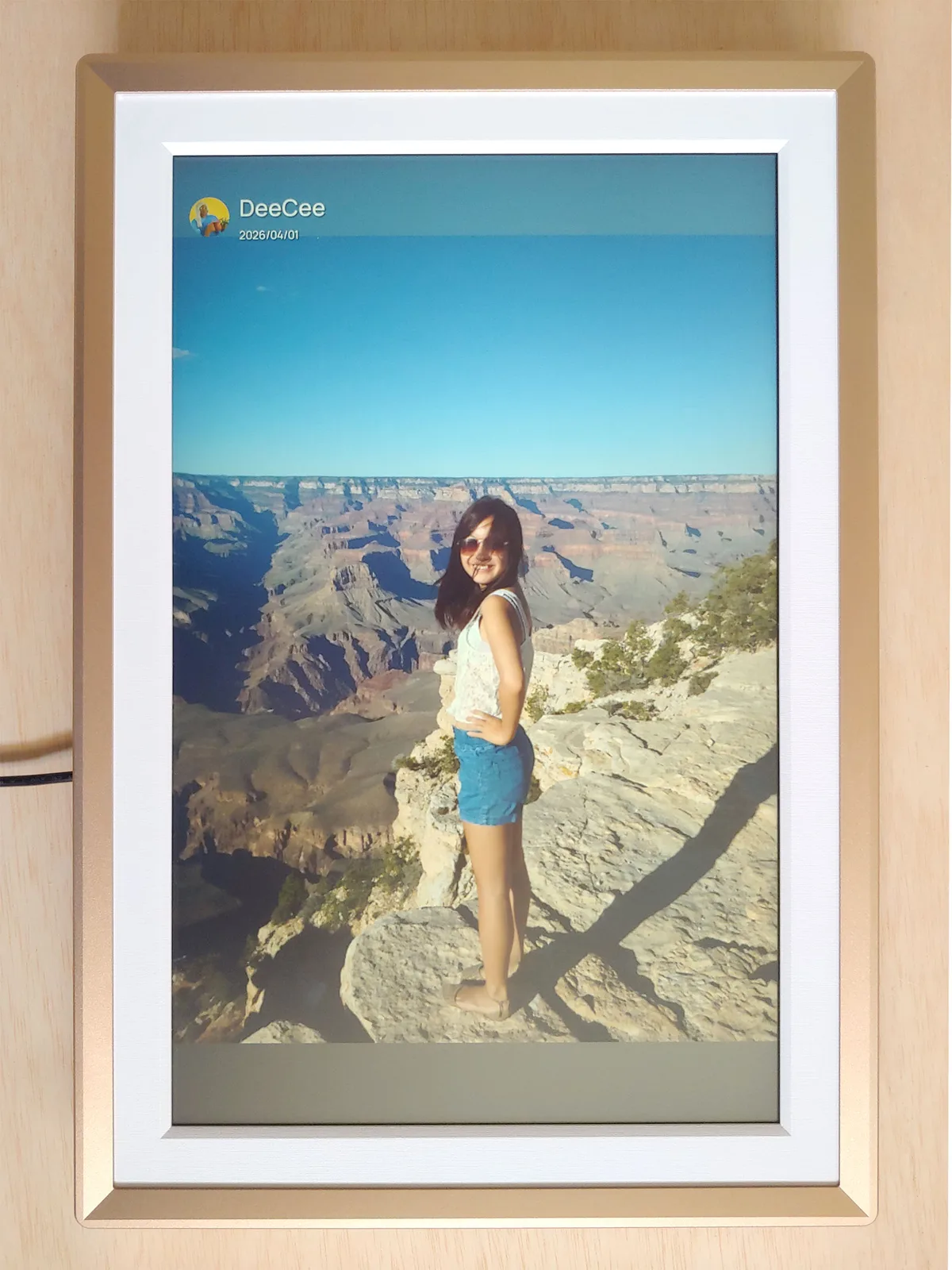Le cadre photo numérique Arzopa D14 affiche un flux infini d'images stockées dans le cloud, et de nouvelles images peuvent être ajoutées à distance par vos amis et votre famille.