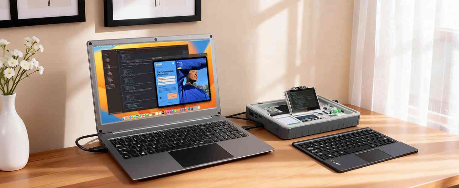 Elecrow propose des systèmes qui peuvent être décrits simplement comme des ordinateurs portables sans processeur dédié. Le CrowView Note 15.6 est l'un de ces modèles, qui se connecte à un smartphone compatible ou à un mini PC. Il peut être utilisé, par exemple, en voyage, pour répondre à des courriels ou effectuer des tâches plus simples sans utiliser de programmes Windows ou macOS dédiés, ou lorsque les utilisateurs ne veulent pas renoncer à l'expérience (limitée) d'un ordinateur portable.