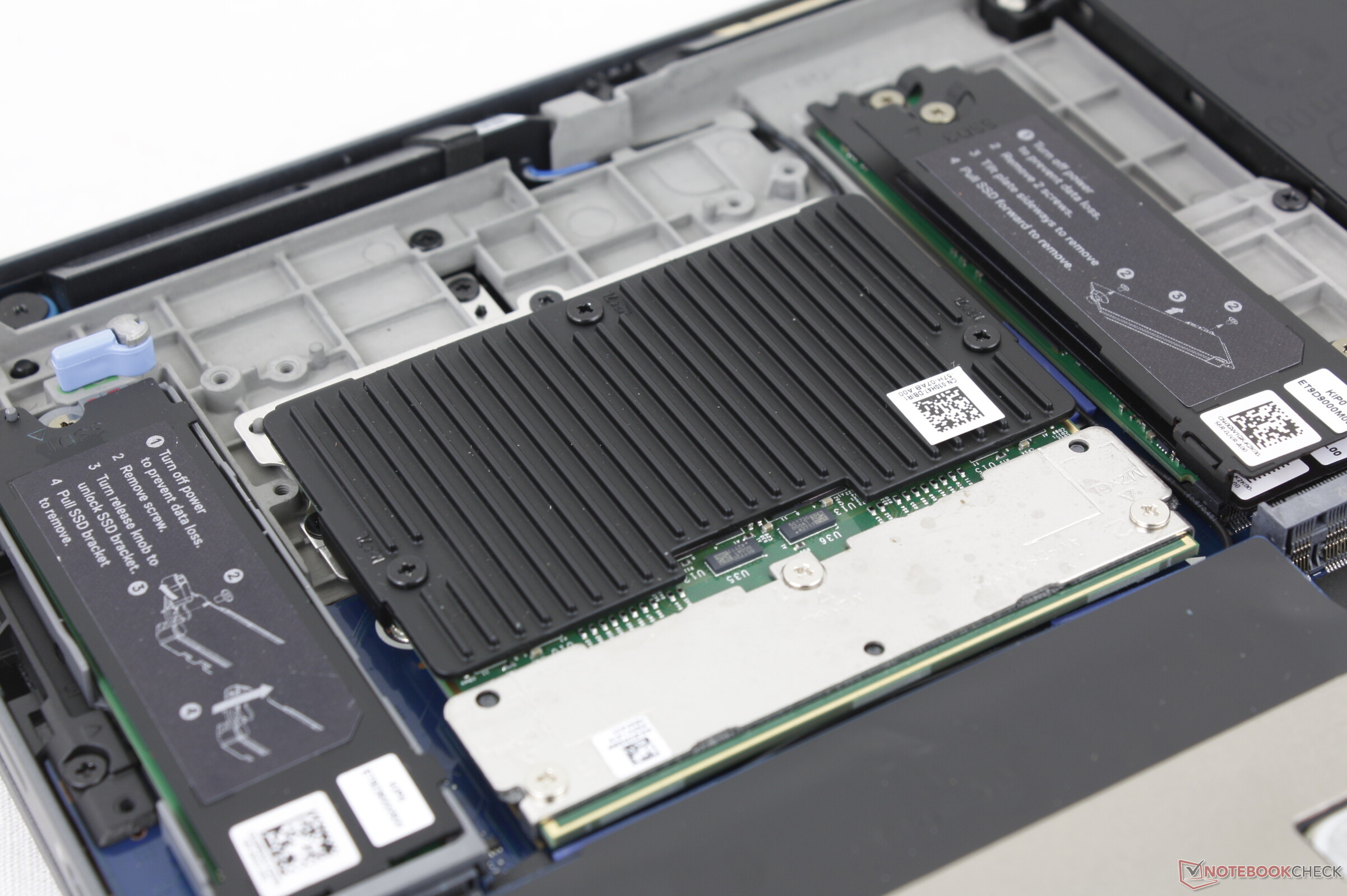 Lorsqu'il est configuré avec la RAM traditionnelle DDR5 SODIMM, le Dell Pro Max 18 Plus peut prendre en charge jusqu'à 96 Go (2x 48 Go) de mémoire DDR5-6400 à double canal, ce qui est assez typique des ordinateurs portables de jeu ou des stations de travail haut de gamme. Cependant, lorsque la mémoire est configurée avec CAMM2, des capacités et des vitesses plus élevées sont disponibles, jusqu'à 128 Go à double canal et 7200 MT/s, respectivement. La plupart des ordinateurs portables équipés d'une RAM SODIMM traditionnelle tourneraient dans la plage de 4800 à 5600 MT/s en comparaison, en particulier lorsque la capacité augmente jusqu'à 64 Go ou plus.