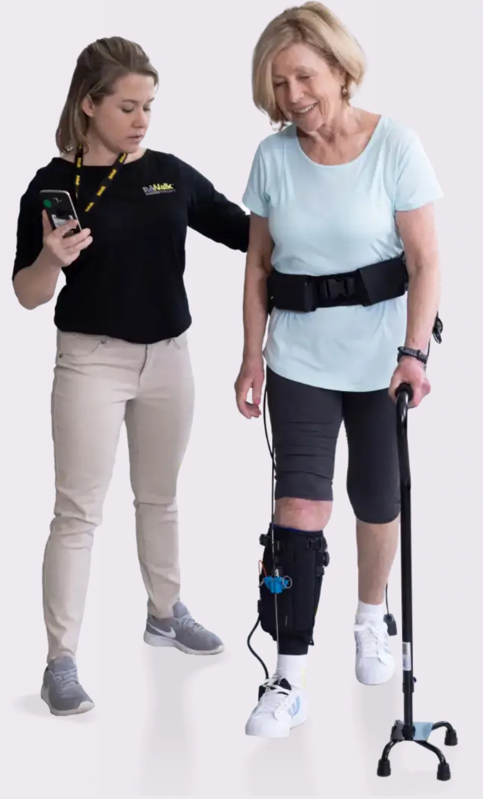 Un simple pas en avant devient dangereux parce que l'avant du pied n'est pas soulevé correctement au début de chaque pas et que le talon ne se pose pas en premier à la fin. La rééducation traditionnelle se limite principalement à maintenir l'équilibre du patient, sans positionner correctement le pied à chaque pas.