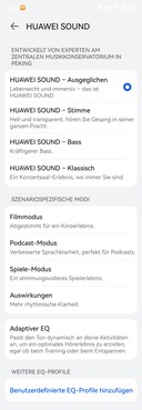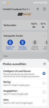 Cependant, la qualité sonore est également excellente avec LDAC et a été sensiblement améliorée, en particulier dans les basses et les médiums. Huawei a également amélioré l'annulation active du bruit (ANC), qui supprime désormais encore mieux les bruits ambiants, même si elle n'atteint pas tout à fait le niveau des AirPods Pro 3 de Apple. Le mode transparence est à la fois clair et silencieux et s'active également lorsqu'un écouteur est retiré.