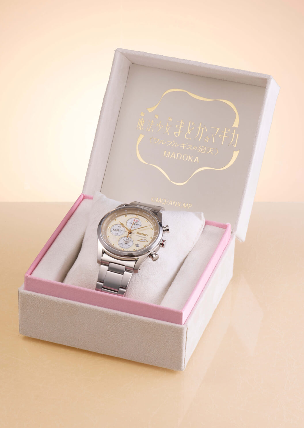 La collaboration consiste à deux références différentes. Le modèle Madoka (NEODAI-286770) présente un cadran or champagne pâle logé dans un boîtier en acier inoxydable brossé. Ce cadran est rehaussé de délicats reflets roses et de motifs de sous-cadrans qui s'inspirent largement des rubans de transformation du personnage. Le modèle Homura (MD25-1132002) présente un profil plus agressif, avec un boîtier noir ionisé et un cadran plus sombre. Le sous-cadran situé à six heures reprend l'iconographie du "lézard courant" et de "Homura agenouillée" des récentes bandes-annonces.