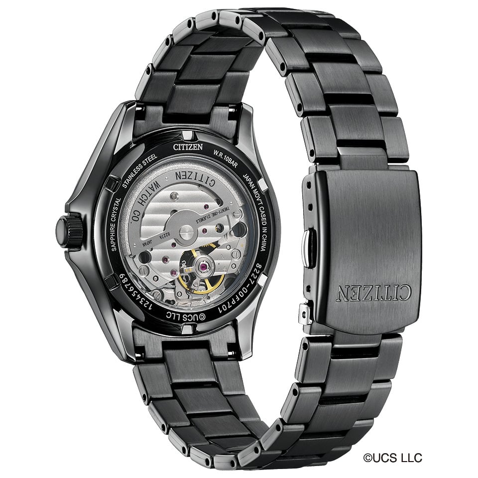 Le premier modèle est la Citizen NH9144-55L ( ), une montre mécanique qui reprend le thème de l'extra-terrestreune montre mécanique dont le thème est la scène emblématique de la bicyclette volante du film. Le cadran bleu montre Elliot et E.T. silhouettés dans un ciel éclairé par la lune, au-dessus d'une fenêtre à cœur ouvert et de deux sous-cadrans pour les secondes courantes et l'affichage des 24 heures. Le boîtier en acier inoxydable mesure 38,9 mm de diamètre et 11,2 mm d'épaisseur, associé à un bracelet brossé à trois maillons. A l'intérieur se trouve le calibre automatique 8227, visible à travers le fond du boîtier. La montre ne sera produite qu'à 350 exemplaires et l'emballage comprend une boîte de présentation E.T. personnalisée, assortie à l'illustration du film. La finition métallique semble plus foncée que l'acier standard - plus proche d'un ton de bronze qui complète le cadran bleu galaxie.