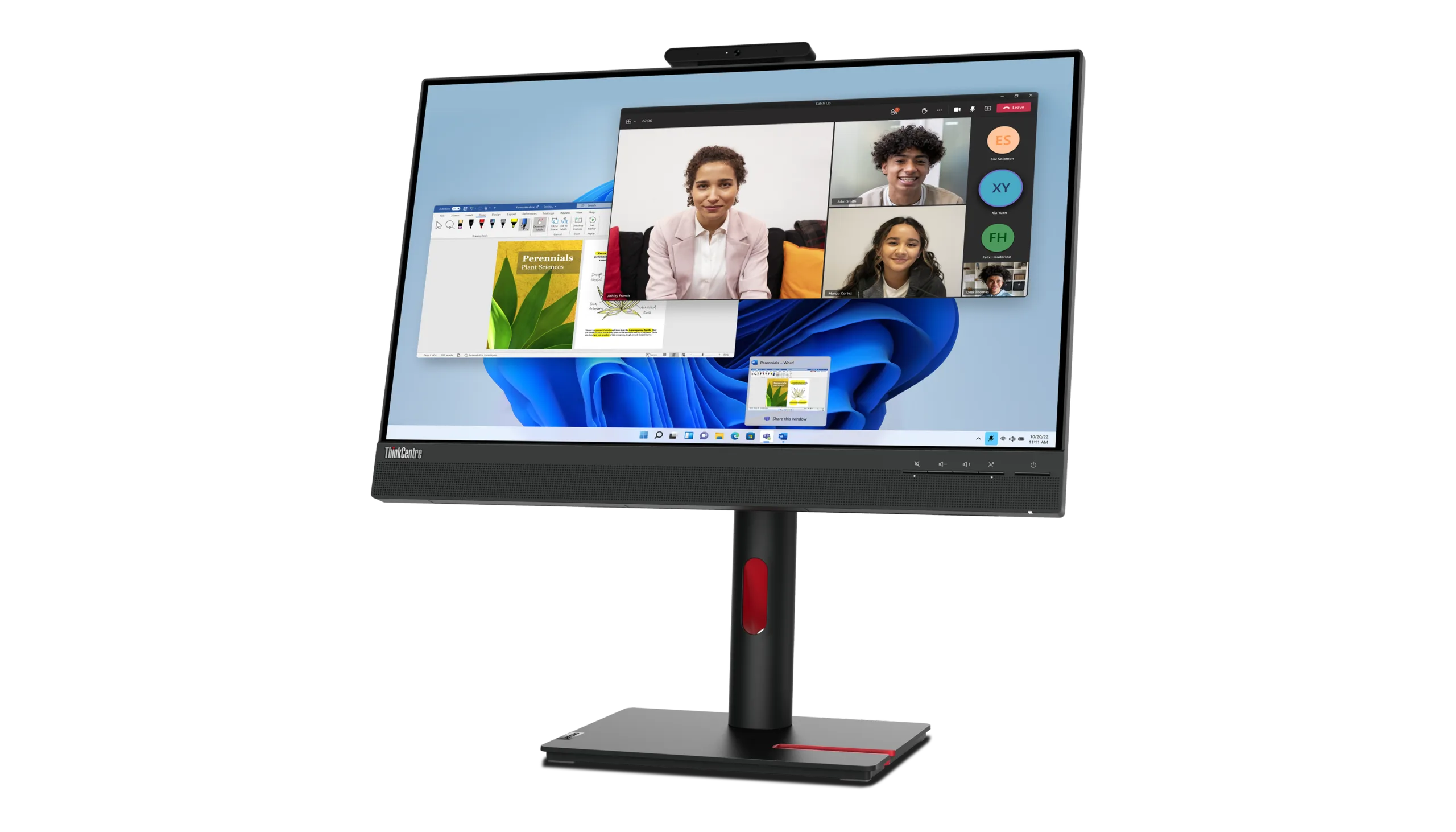 Le moniteur ThinkCentre Tiny-in-One (TIO) Gen 5 utilise un écran LCD IPS FHD (1 920 x 1 080) avec fonctionnalité tactile en option, une luminosité de pointe de 250 nits (225 pour la version tactile), une fréquence de rafraîchissement de 60 Hz, un temps de réponse de 6 ms (4 ms en mode extrême) et une couverture de 99 % de la gamme de couleurs sRGB. Le connecteur trois-en-un inclus permet une connectivité modulaire avec les unités de bureau Lenovo Tiny existantes, à savoir les ThinkCentre M les ordinateurs de bureau à petit facteur de forme.
