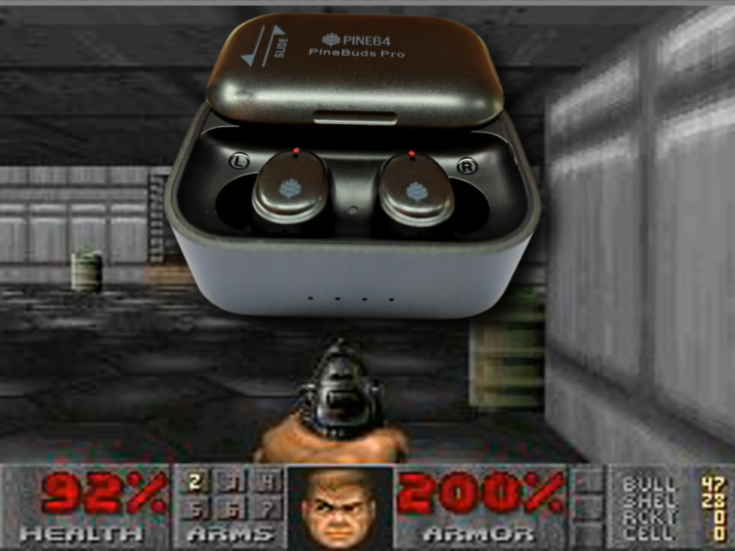 Le jeu fonctionne entièrement sur le propre processeur des écouteurs, grâce au micrologiciel ouvert du PineBuds Pro et à une série de modifications techniques. La puce ARM Cortex M4F intégrée a été overclockée de 100 à 300 MHz, les fonctions d'économie d'énergie ont été désactivées et de la RAM supplémentaire a été libérée en désactivant un coprocesseur. Doom lui-même a également été fortement optimisé : les variables constantes ont été déplacées vers le stockage flash, la mise en cache interne a été supprimée et, au lieu du fichier shareware standard, un WAD "Squashware" dépouillé mesurant seulement 1,7 Mo a été utilisé.
