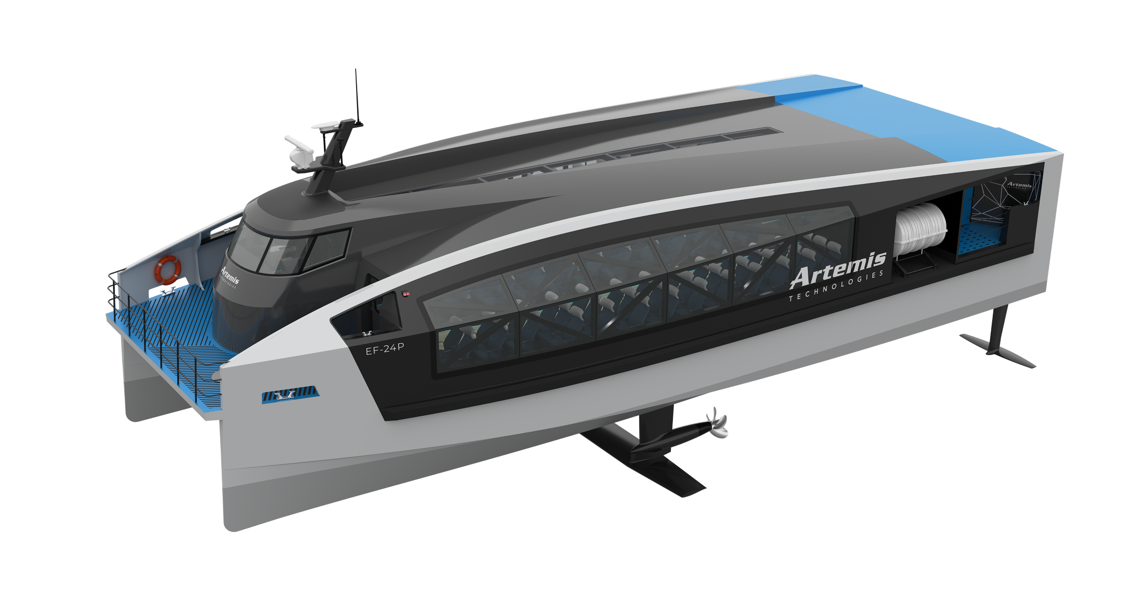 Artemis a récemment annoncé la livraison à Beflast de trois ferries électriques à foils EF-24. L'Artemis EF-24 Passenger est considéré comme un ferry à grande vitesse et utilise des hydrofoils pour se déplacer principalement au-dessus de l'eau, comme le Boeing 929 (jetfoil), qui est principalement utilisé en Asie de l'Est, mais qui est beaucoup plus grand.