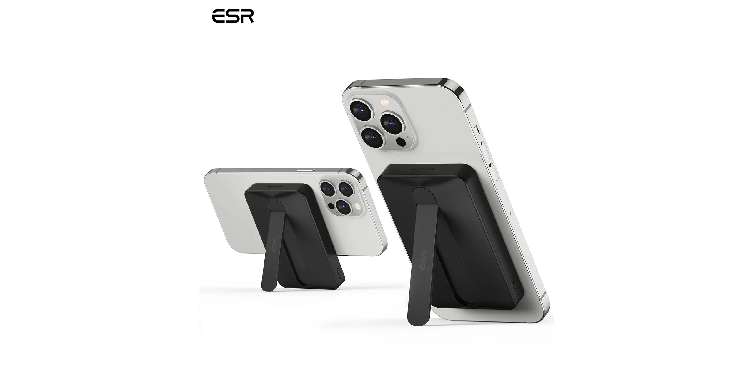 Le dernier accessoire d'ESR avec son dernier accessoire HaloLock est un bloc d'alimentation du type qui peut tirer parti de la prise MagSafe d'un iPhone récent MagSafe de l'iPhone le plus récent pour un chargement magnétiquesans câble. Toutefois, cette version de la catégorie émergente intègre également une batterie pliable-béquille escamotable.