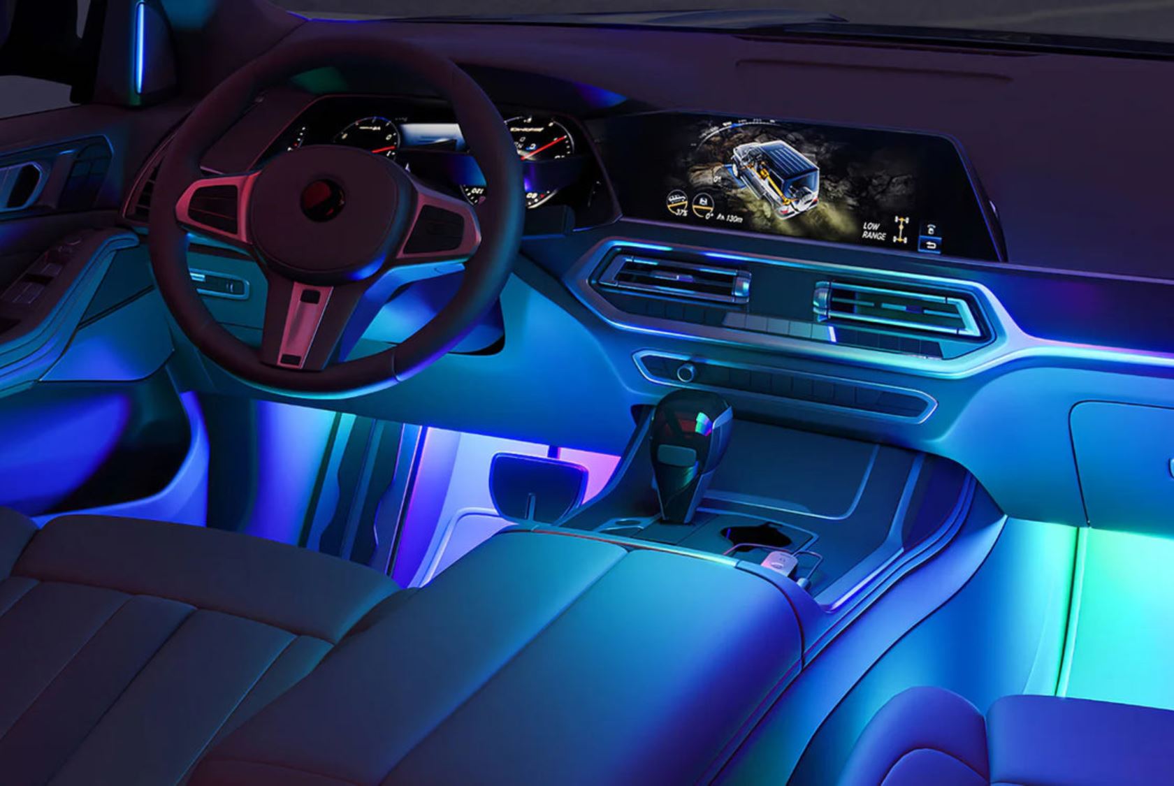 Cette conception permet une installation personnalisée dans le véhicule. Par exemple, une bande lumineuse peut être placée sous chaque siège avant et une autre dans chaque espace pour les pieds à l'avant. D'autres emplacements sont également possibles, pour autant que les câbles soient accessibles. L'alimentation est assurée par une prise de courant auxiliaire de 12 V, également connue sous le nom d'allume-cigare. Les lampes d'intérieur Govee RGBIC peuvent être contrôlées par Bluetooth à l'aide de l'application Govee.