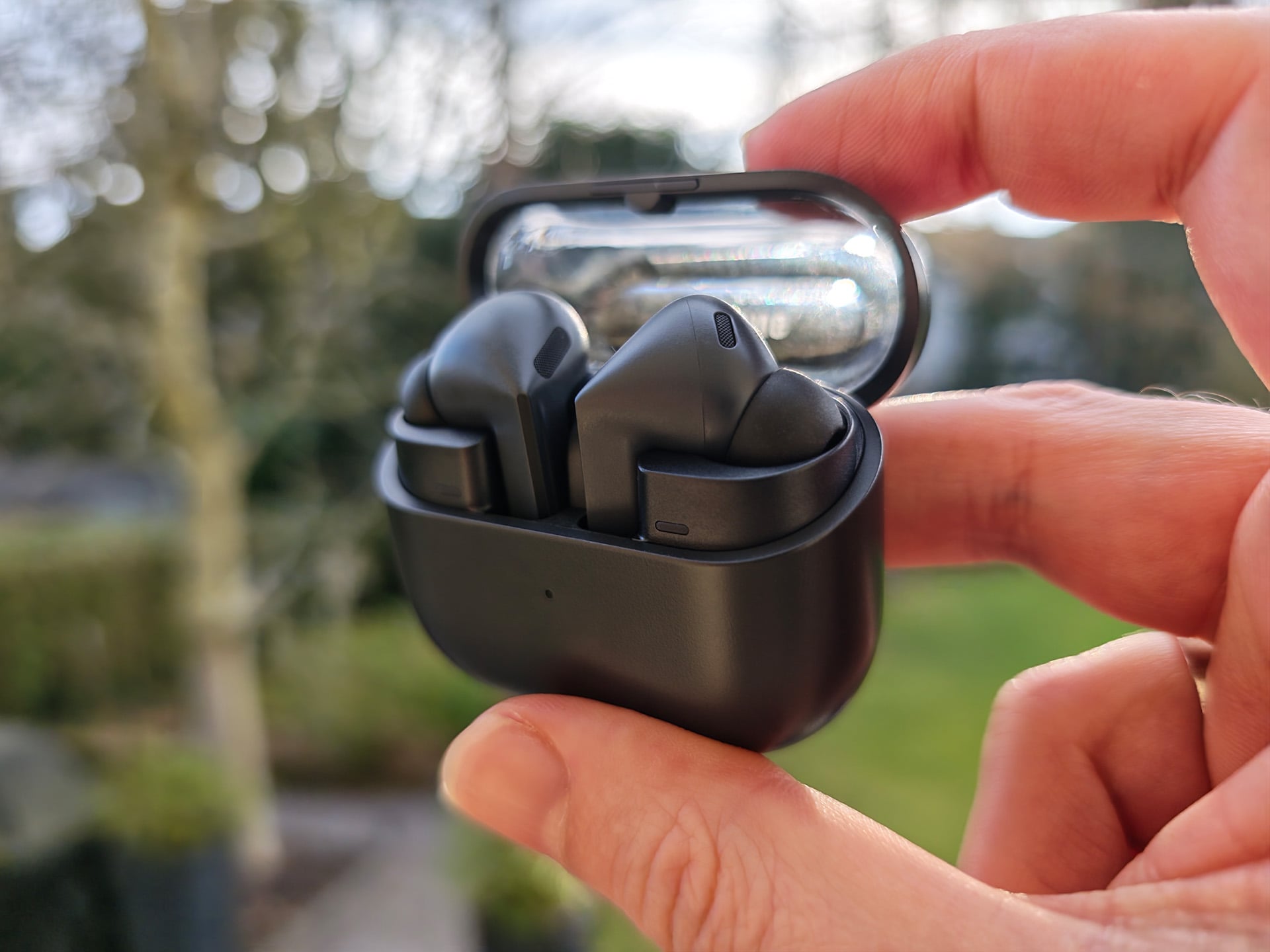 Trois microphones optimisés par l'IA par écouteur capturent la parole très clairement, et le bruit du vent est sensiblement réduit, mais le bruit de fond est toujours audible en cas de trafic intense ou de vents forts. Les personnes qui téléphonent font état d'une bonne clarté d'appel.