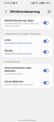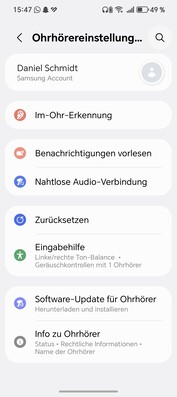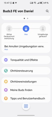Les commandes tactiles sur la tige du Samsung Galaxy Buds3 FE permettent un contrôle précis : touchez pour la lecture/pause, glissez pour le volume et maintenez pour basculer le mode ANC. Ces gestes sont personnalisables dans l'application Galaxy Wearable. L'application permet également d'effectuer des préréglages d'égalisation, des tests d'ajustement des embouts, des mises à jour du micrologiciel et d'accéder aux outils d'IA de Galaxy, comme le mode Interpreter. La commutation transparente entre les appareils Galaxy fonctionne parfaitement, mais la fonction multipoint vers des appareils non Samsung est absente.