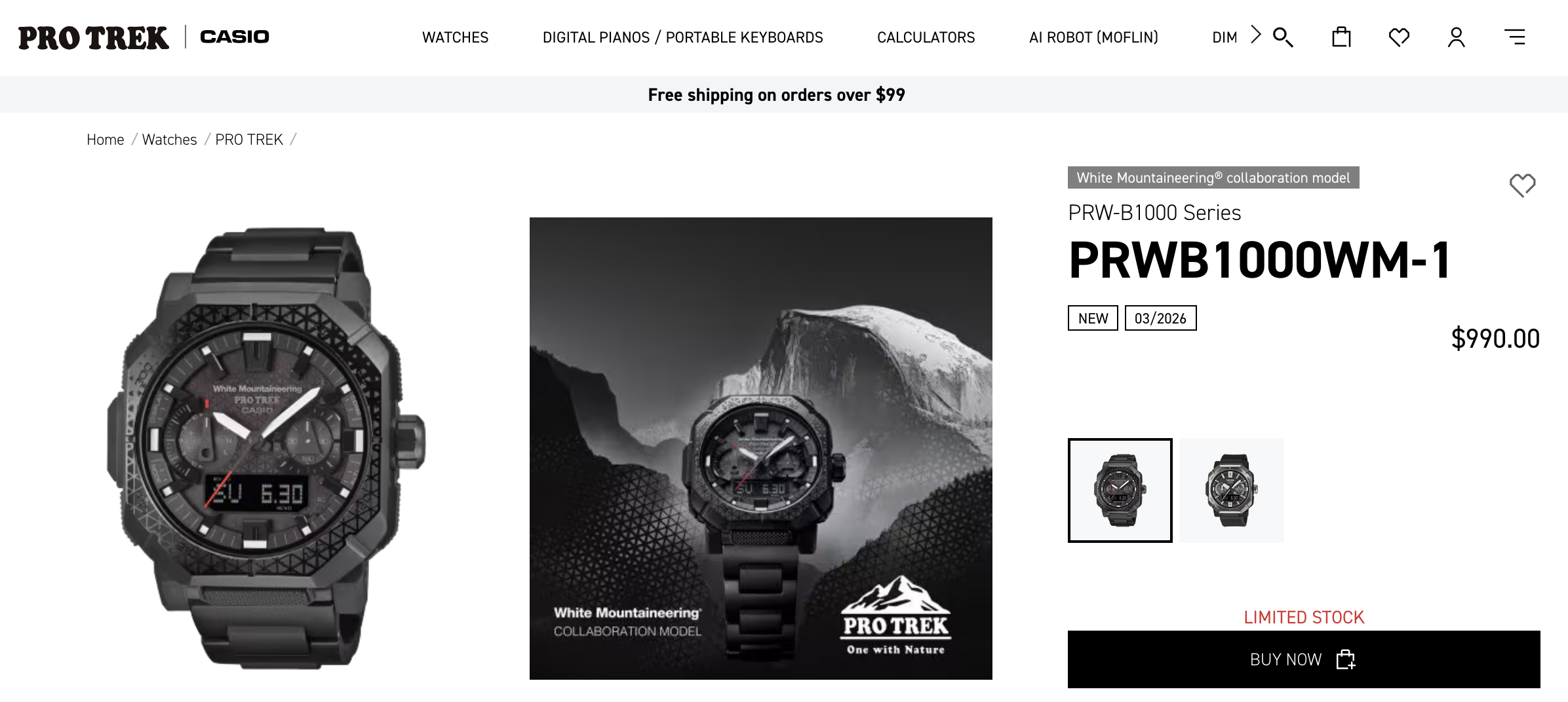 Casio's récemment annoncée Pro Trek avec White Mountaineering est désormais disponible à l'achat aux Etats-Unis, avec des listes montrant un stock limité pour le PRW-B1000WM-1. Le modèle a été présenté plus tôt cette année, et les pages de vente au détail de confirment maintenant le prix de 990 $.