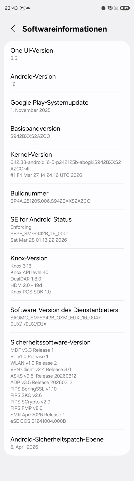 Le smartphone de Samsung est également exceptionnellement bien équipé en matière de connectivité mobile. Il prend en charge toutes les normes actuelles, y compris la 5G Sub6. La couverture des fréquences est large, mais pas exhaustive, ce qui devrait permettre de garantir un service fiable dans la plupart des pays.