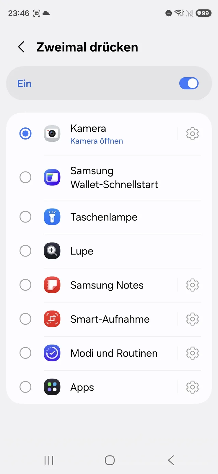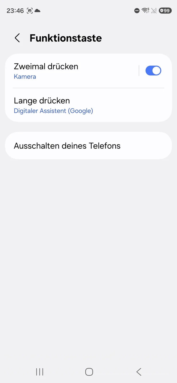 Le bouton d'alimentation est en fait plus un bouton de fonction qui permet non seulement d'éteindre et d'allumer le smartphone, mais aussi de lancer directement l'assistant configuré ou une application spécifique. Un mode d'utilisation à une main est également inclus.